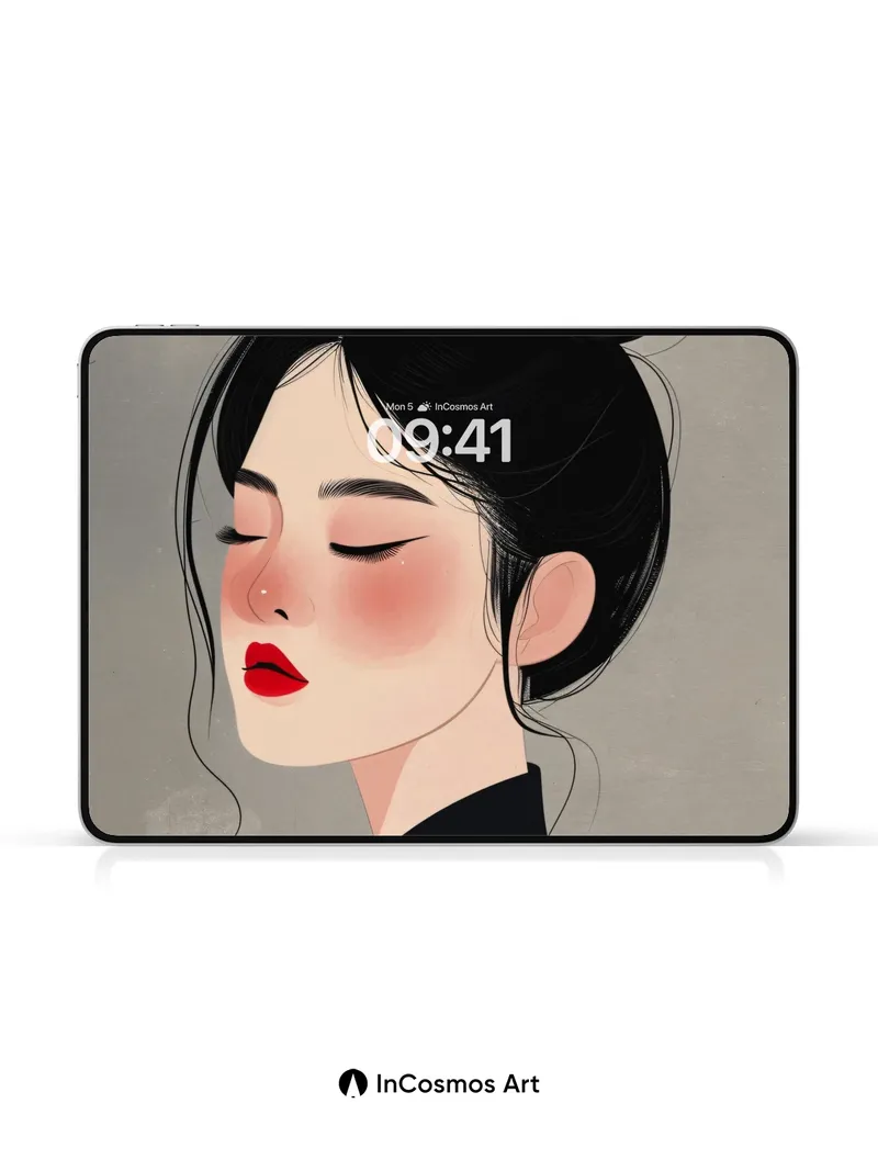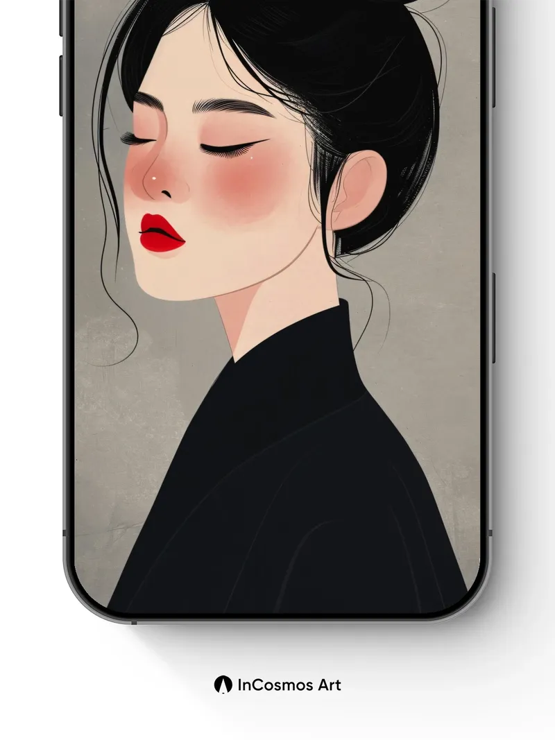 Serene Ink Portrait Wallpaper with Velvet Shadows