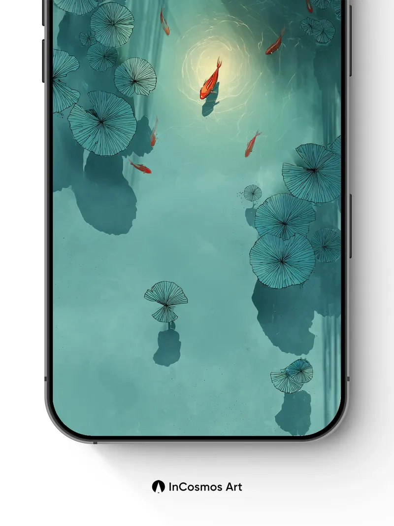 Serene Koi Garden Wallpaper with Floating Umbrellas