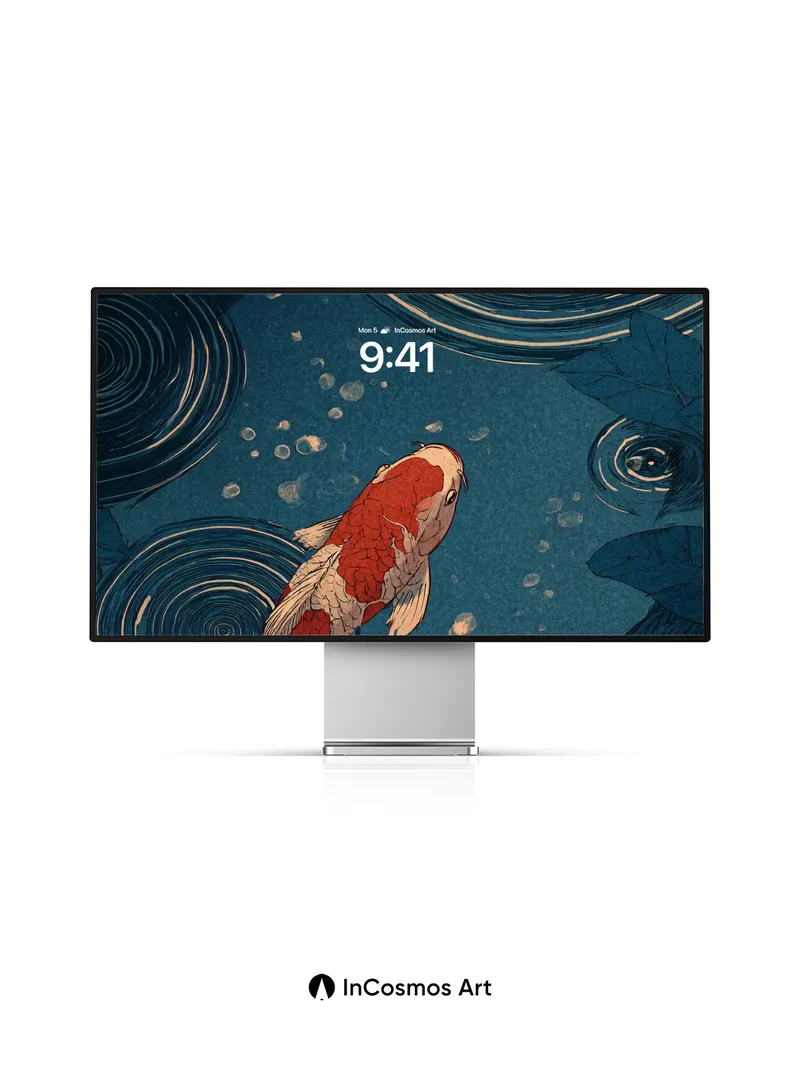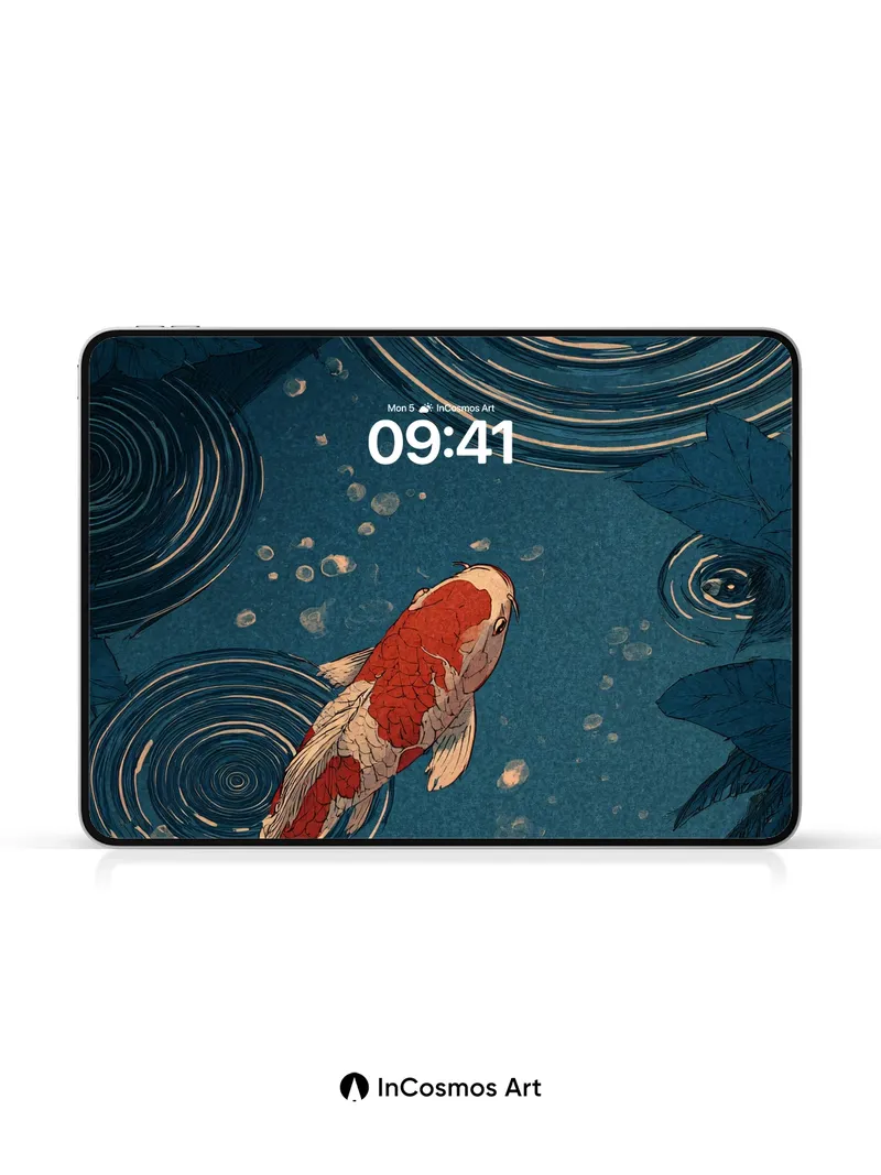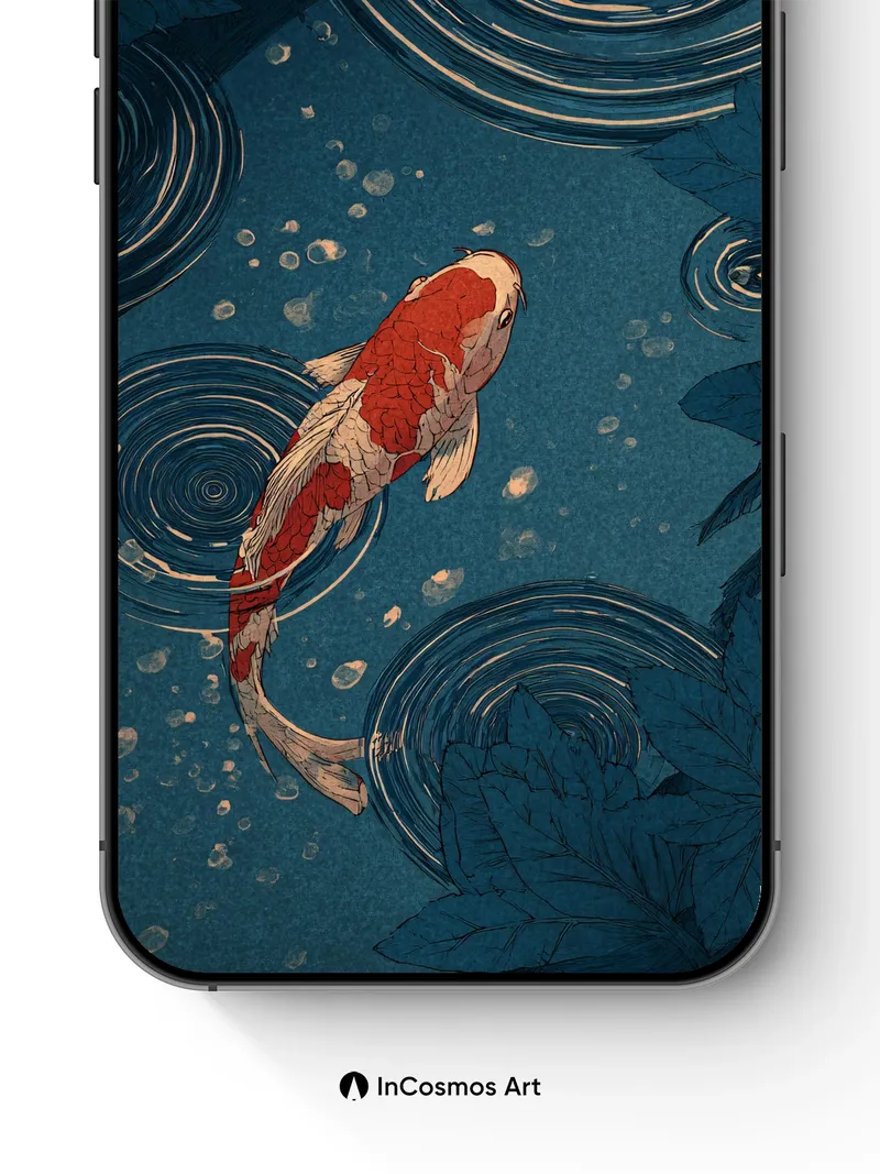 Serene Koi Wallpaper with Ink-Blot Ripples