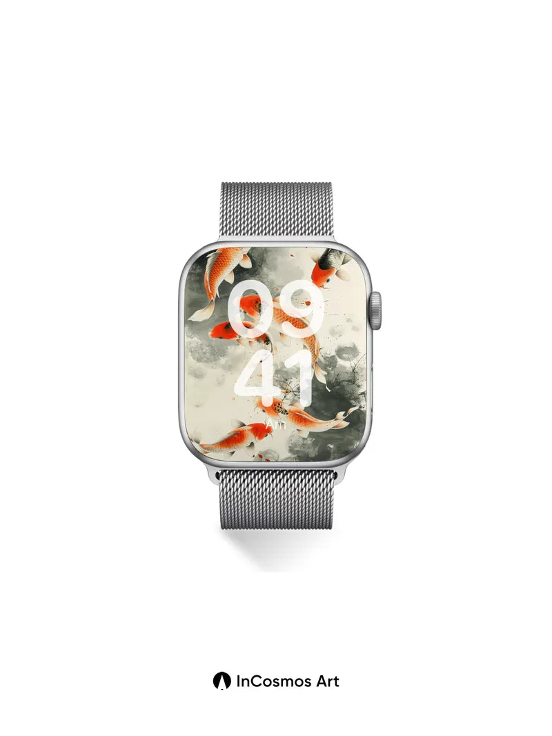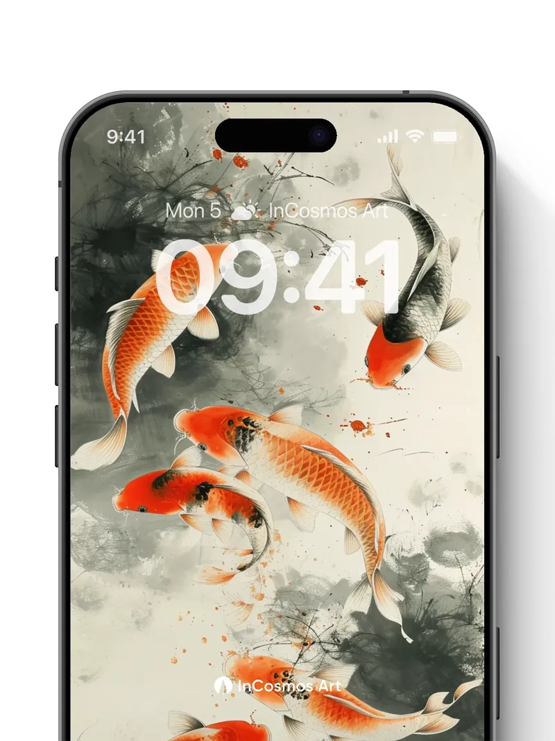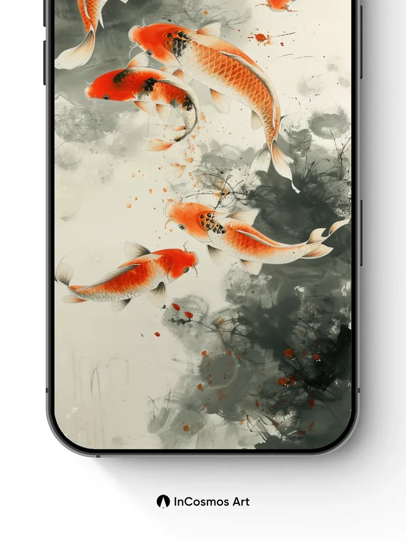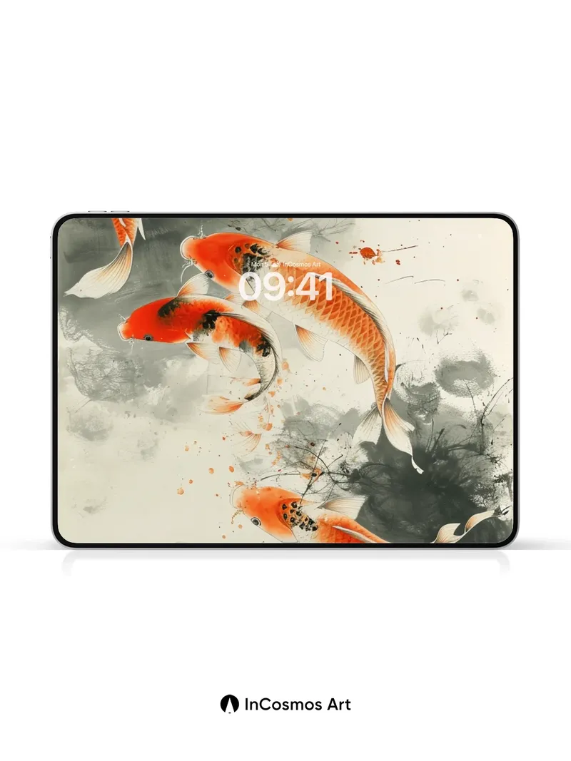 Serene Koi Watercolor Wallpaper with Ink Mist