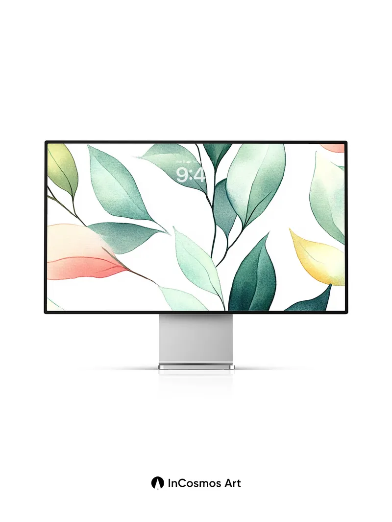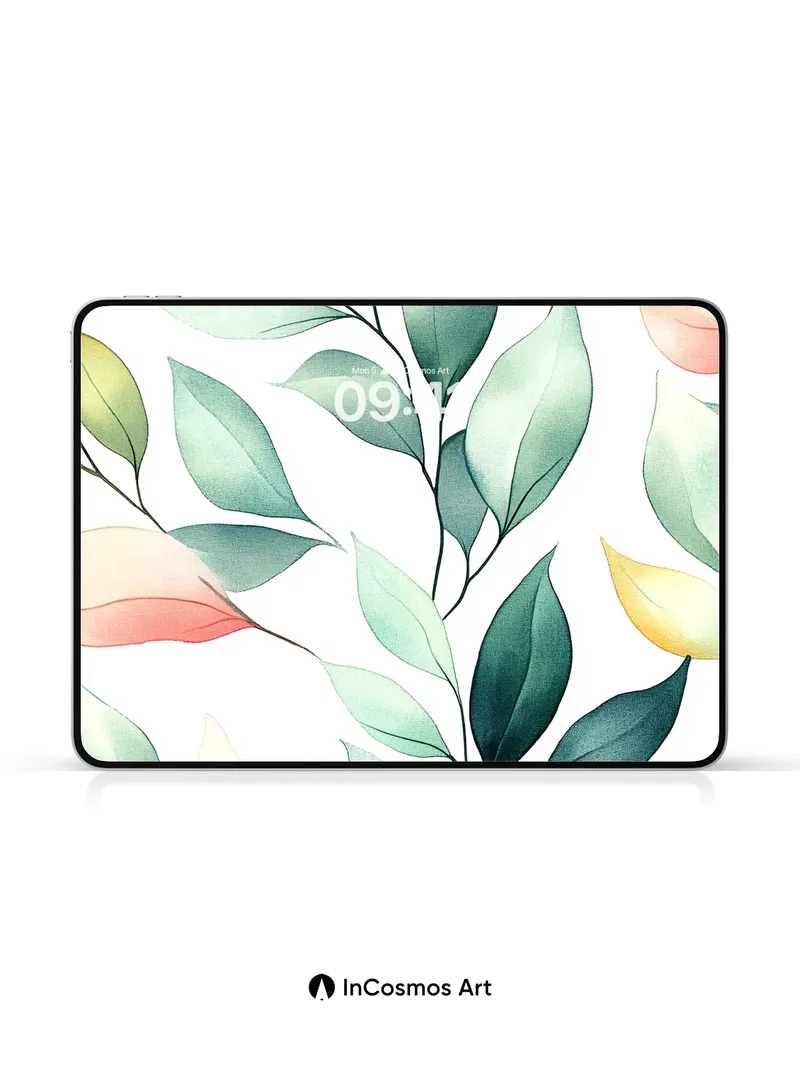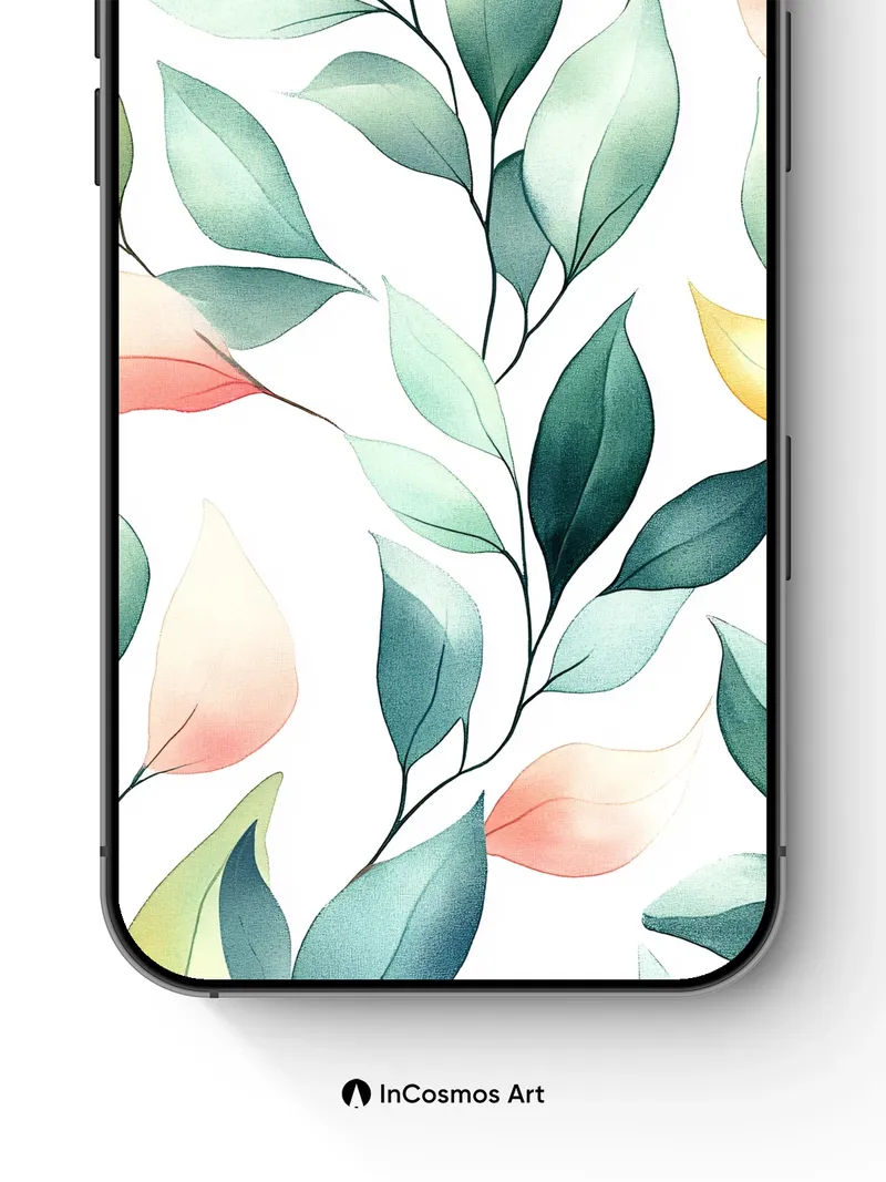 Serene Leaf Veil Wallpaper with Watercolor Hues