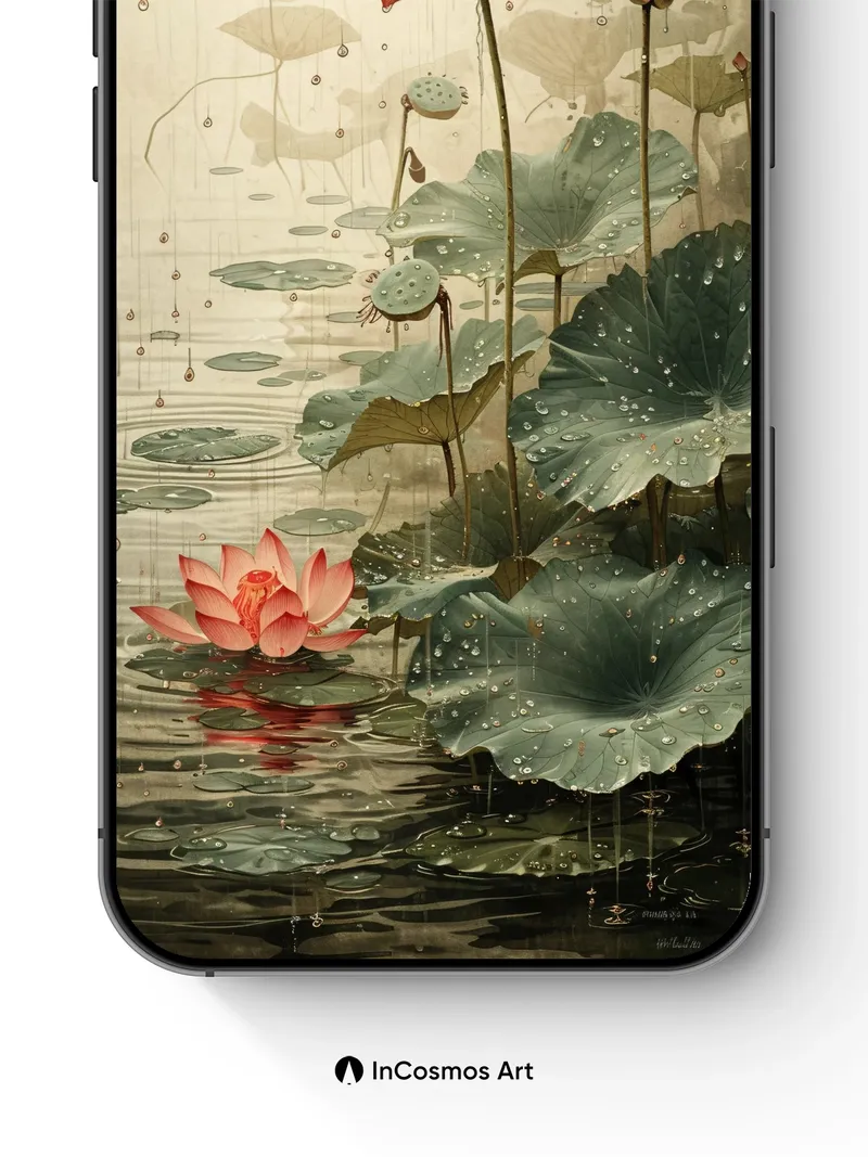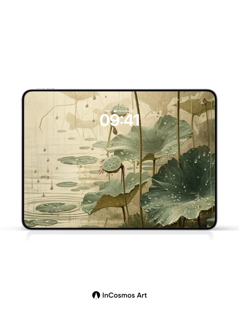 Serene Lotus Wallpaper with Dew-Kissed Leaves