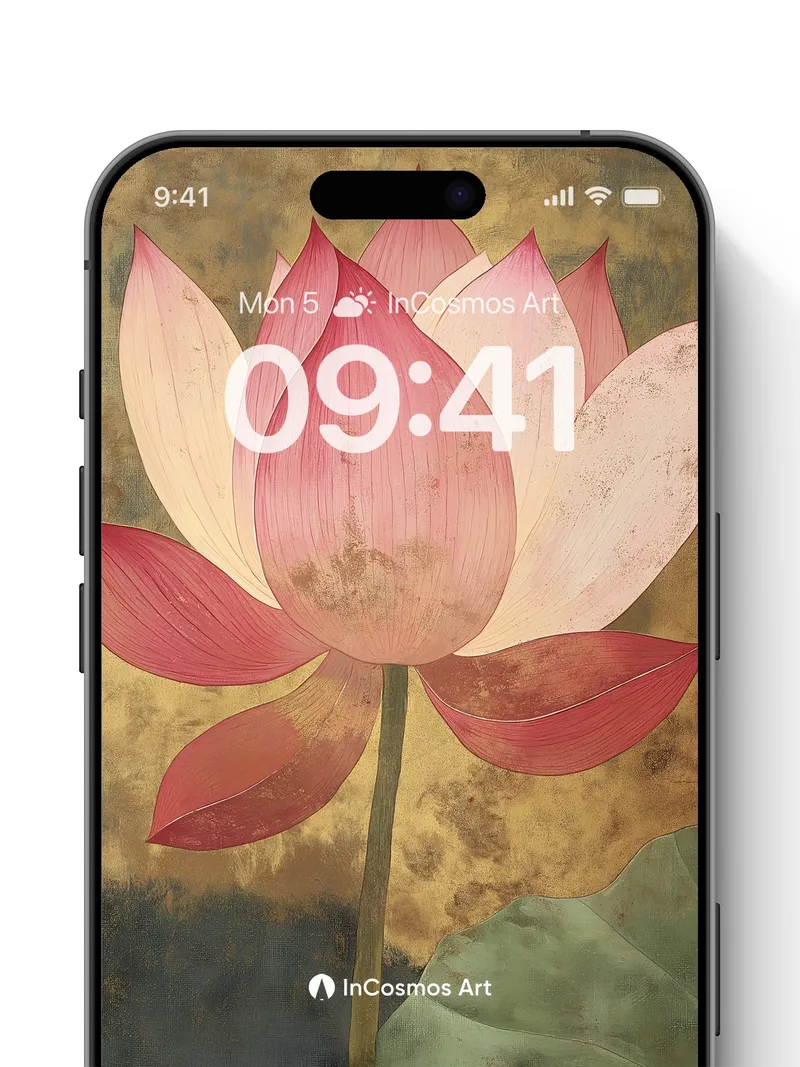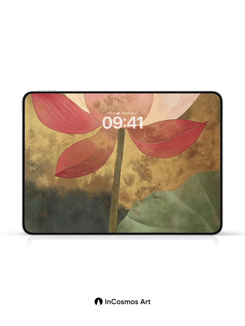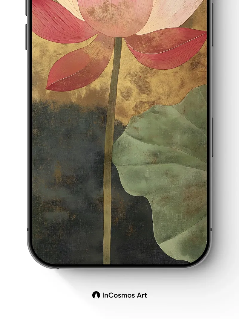 Debug product.metafields.custom.desc: Did you know lotus flowers rise from muddy waters to bloom untouched by impurity? This delicate bloom glows against a weathered gold backdrop, its petals brushed with time and soft light, while a single leaf floats like a whisper on dark water. The stem stands tall, not just in form but in quiet defiance—each fold of the petal holds a story of stillness and resilience.