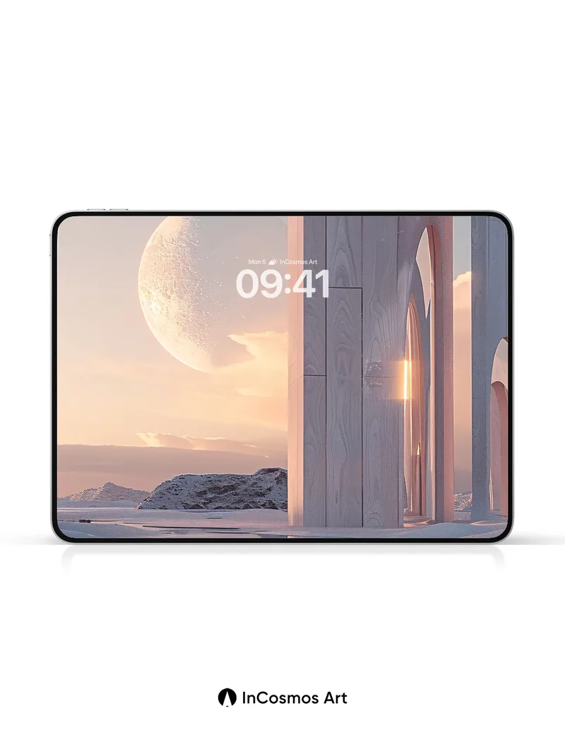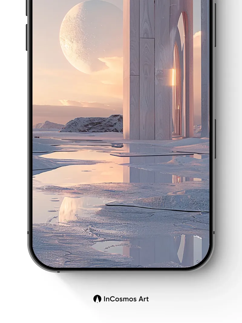 Serene Lunar Arch Wallpaper with Reflective Snow