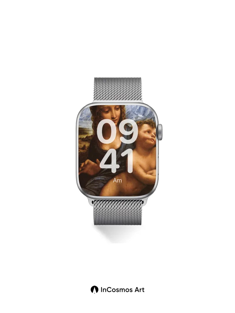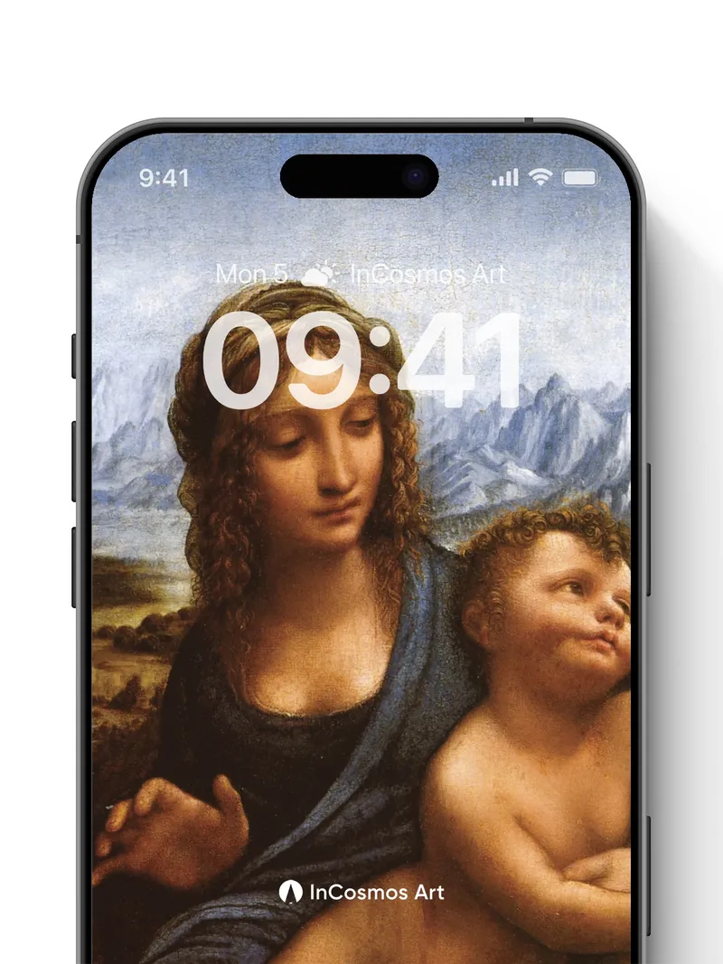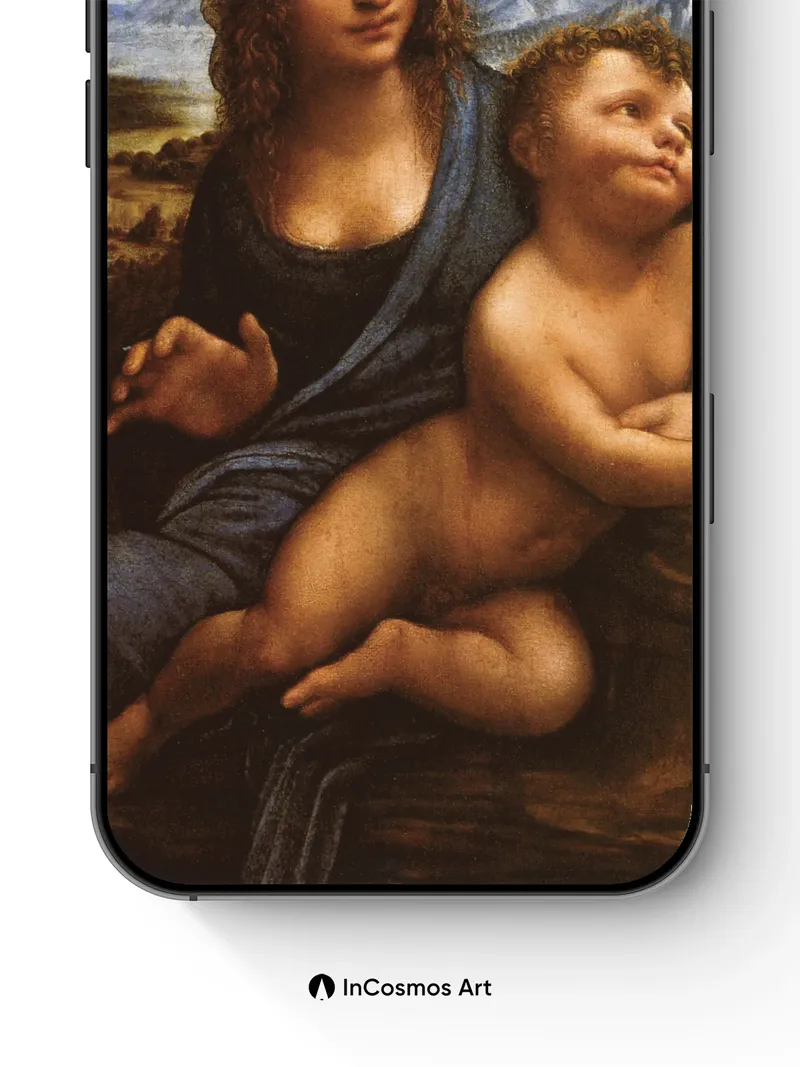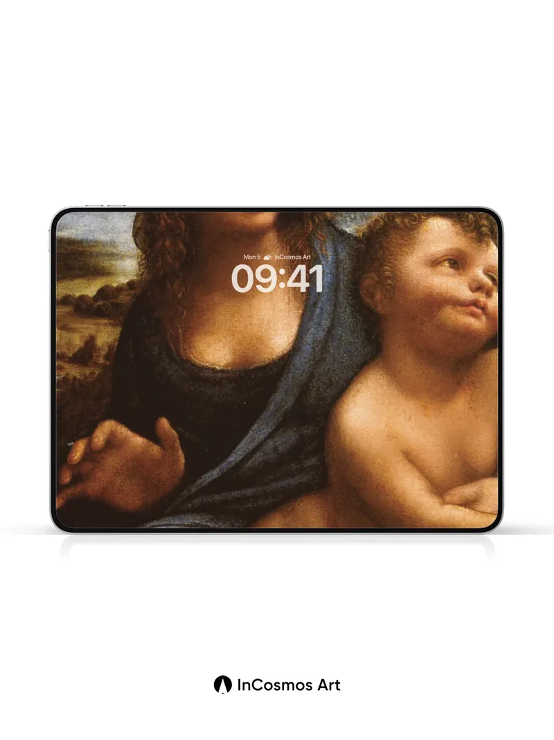 Debug page_description: Did you know Leonardo da Vinci used a technique called sfumato to blur edges and create soft transitions in light and shadow? Here, the golden curls of the Virgin’s hair seem to breathe into the cool blue drapery, while the infant’s skin glows like warm stone under a hushed sky. The distant mountains fade into mist as if time itself pauses beneath their gaze. Share this with your best friend. Send this to your love and swap a matching set. What would you whisper to the child who looks beyond the world?