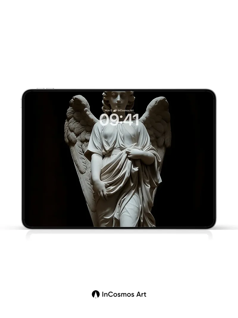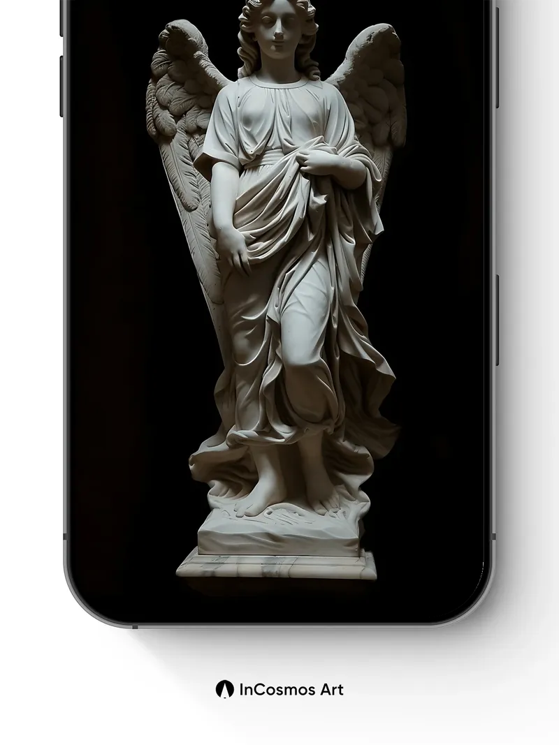 Serene Marble Angel Wallpaper with Ethereal Light
