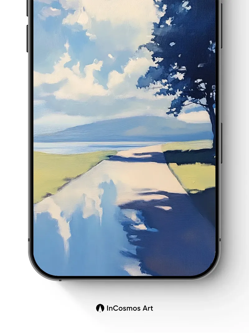Serene Pathway Wallpaper with Cloud-Reflected Light