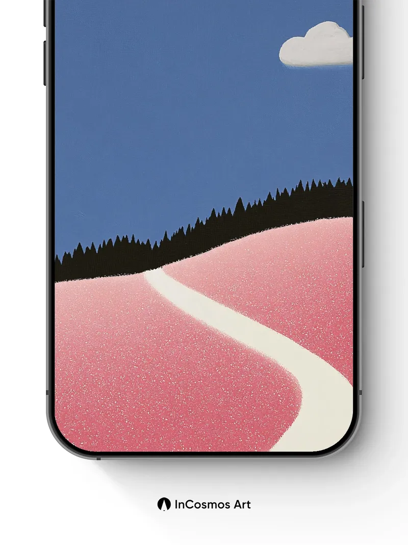 Serene Pink Path Wallpaper with Midnight Forest Edge