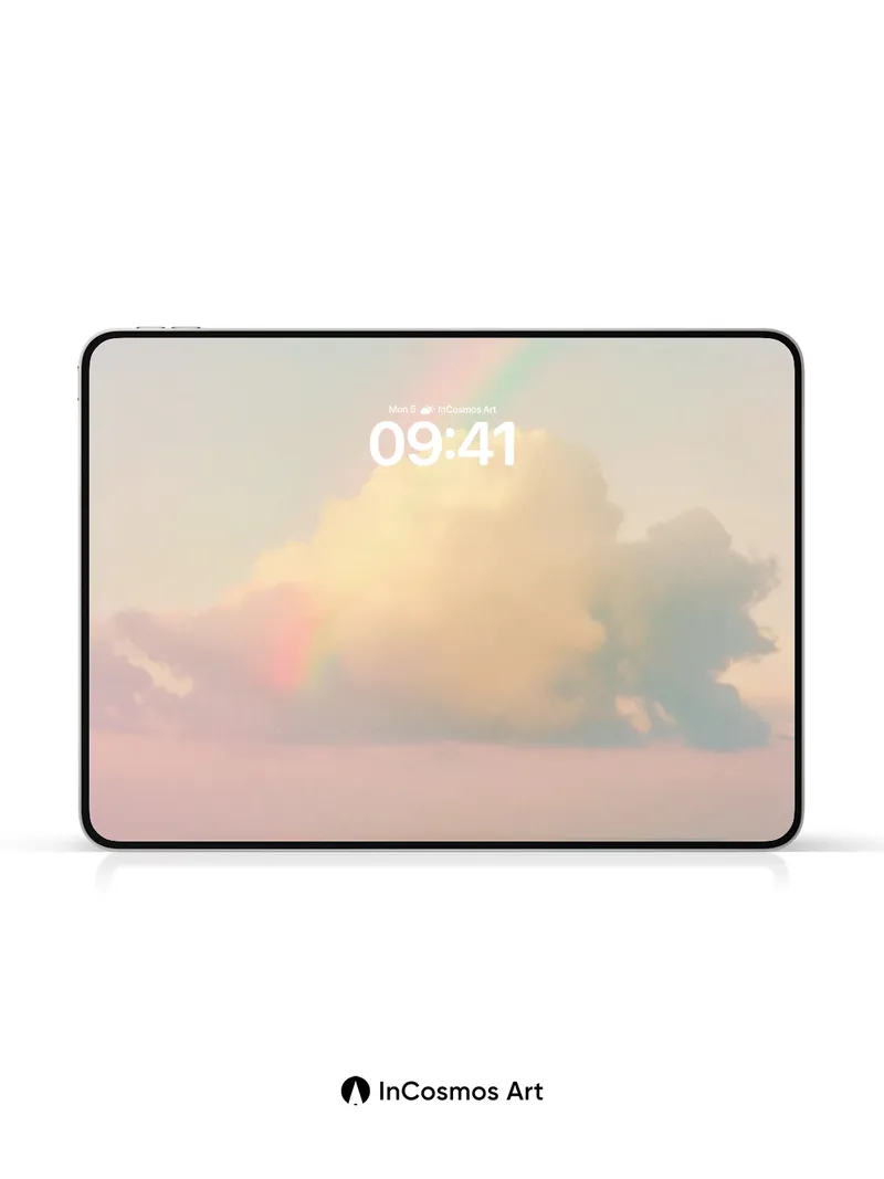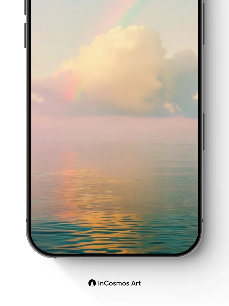Serene Rainbow Horizon Wallpaper with Cloud Reflections