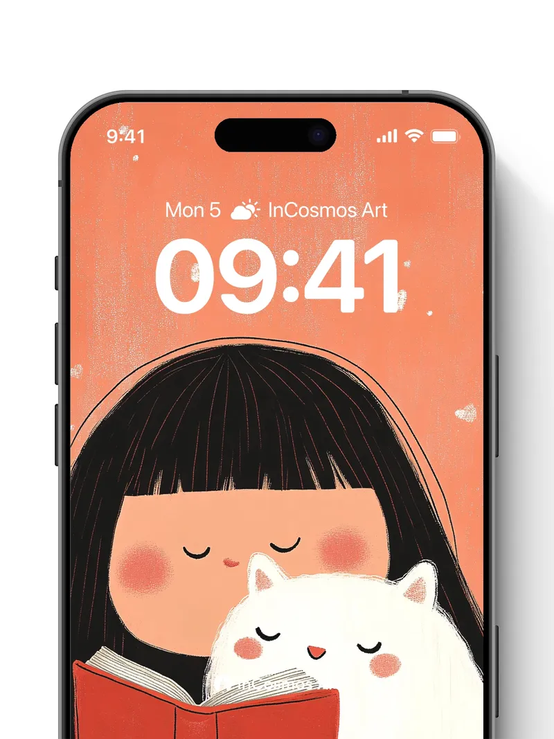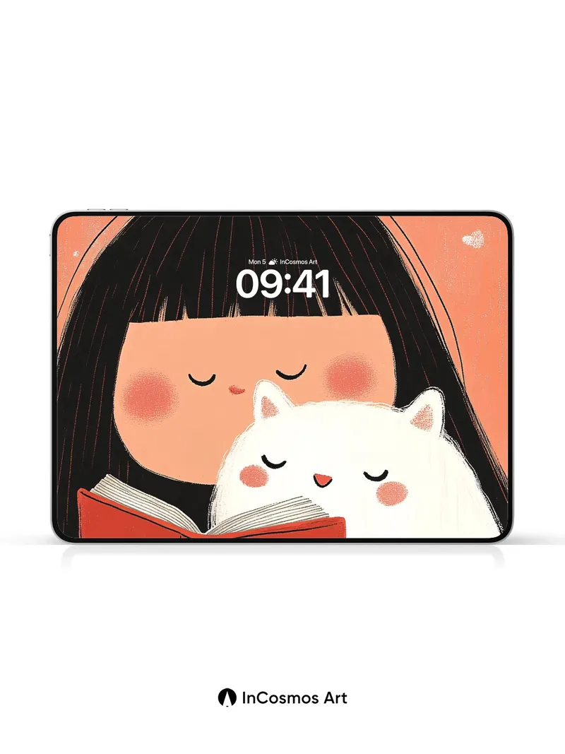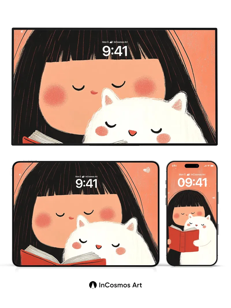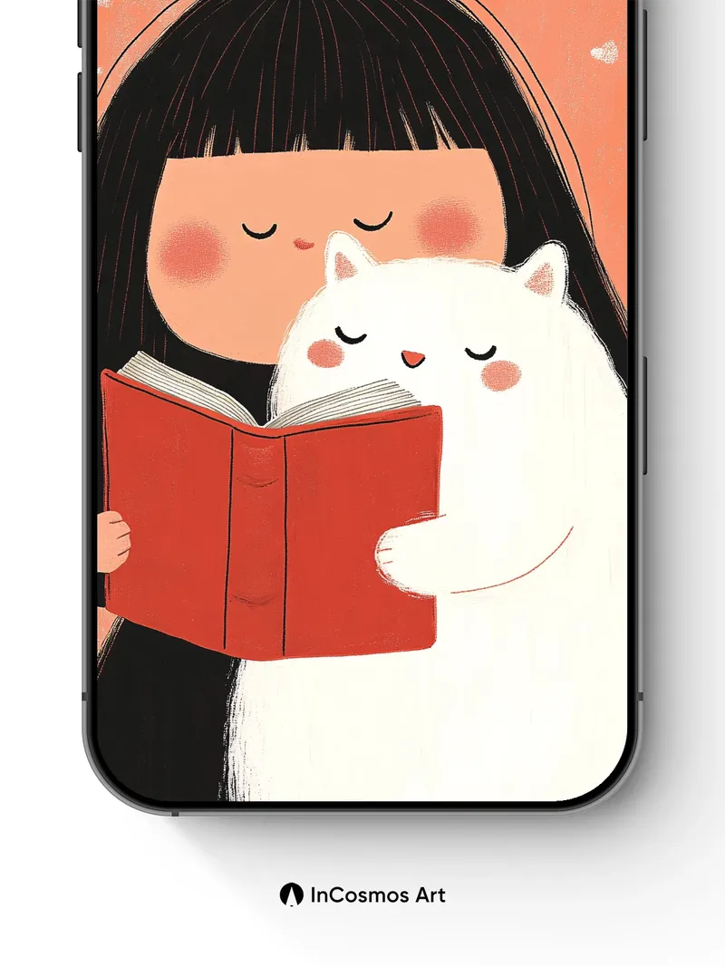 Serene Reading Moment Wallpaper with Feline Companion