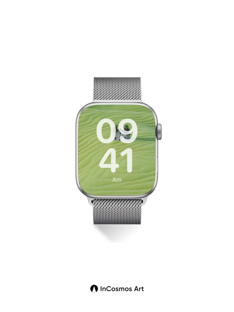 Debug product.metafields.custom.desc: Did you know the texture of a wheat field under morning light resembles soft, undulating silk? This landscape breathes with quiet rhythm, each wave of green grass curling like a living blanket around a solitary white cottage. The house stands small and still, a whisper against the vastness, as if time itself paused to admire the harmony between structure and nature.