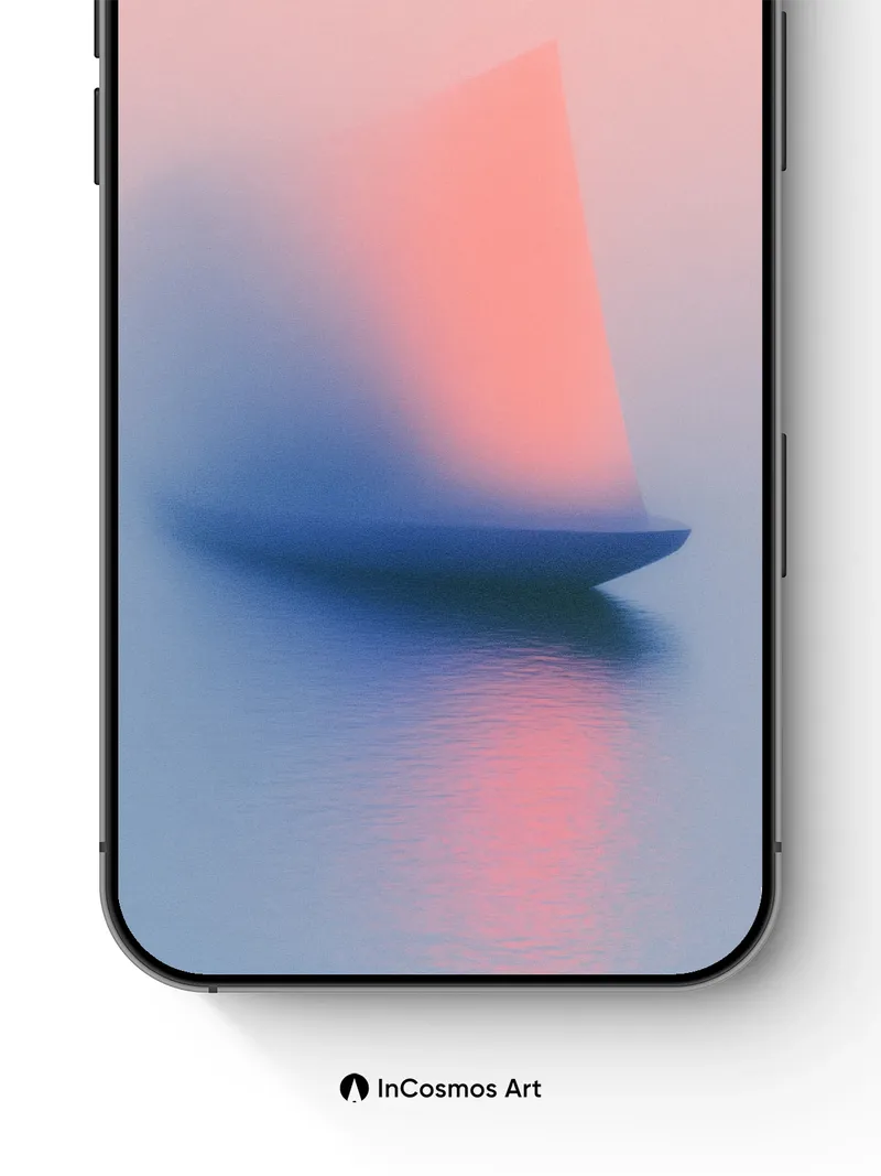 Debug product.metafields.custom.desc: Did you know the color palette of this image echoes the atmospheric shifts seen in early morning mist over still water? A lone sailboat glides across a glassy surface, its form softened by a dreamlike blur where light bleeds into pigment like ink in water. The sky blushes coral above, while the sea reflects a quiet indigo, and the sail itself seems to breathe with gentle transitions from rose to violet—each hue whispering calm into your space.