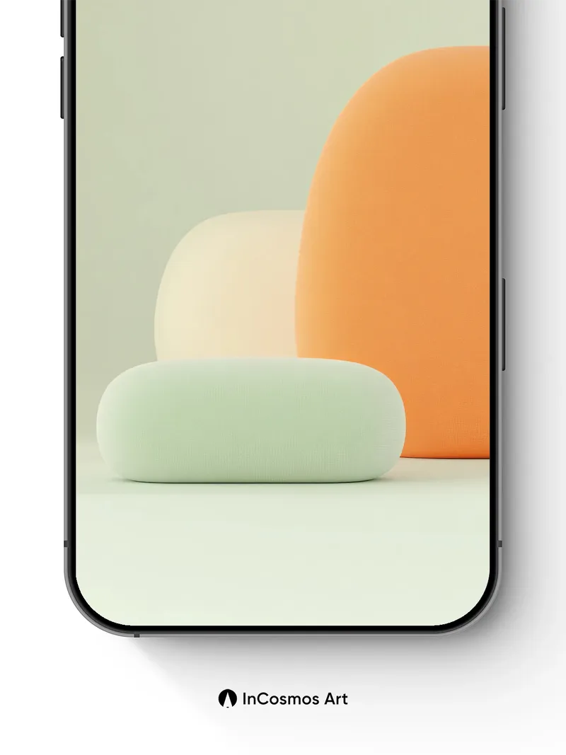 Debug product.metafields.custom.desc: Did you know the smoothest surfaces in nature are often shaped by time and silence? This image breathes with quiet geometry—rounded forms in pastel hues float like clouds made of felt, their edges softened by diffused light that glides over each curve as if it were a whisper. The pale mint foreground rests gently against warm terracotta and cream, evoking a sense of calm balance where color feels alive yet still.