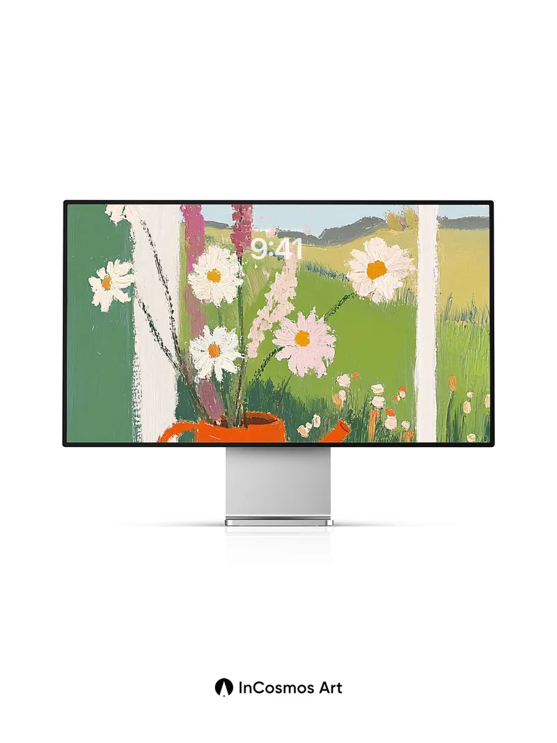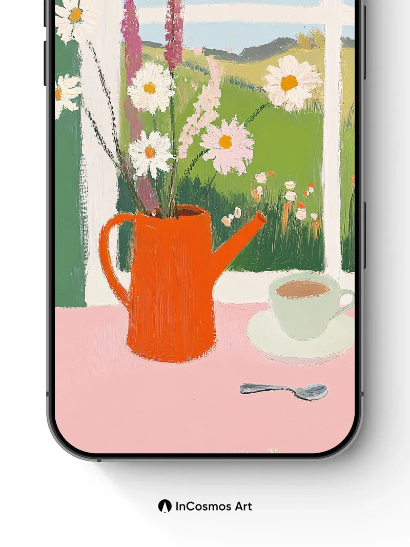Debug product.metafields.custom.desc: Did you know daisies once symbolized innocence in Victorian floriography? Here, they breathe softly from a terracotta pitcher, their white petals catching the morning light as it spills across a pink tablecloth like honey on warm stone. Outside, rolling hills hum beneath a sky so pale it feels like breath itself—while inside, a cup of tea waits, untouched, as if time paused just to admire this quiet moment.