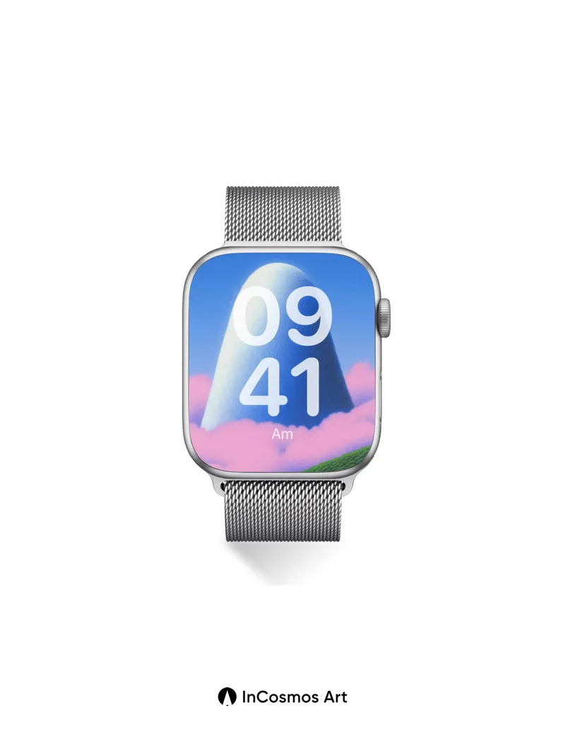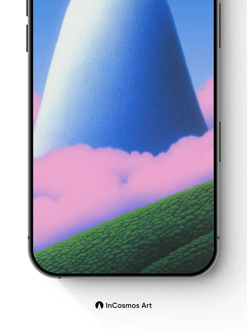 Debug product.metafields.custom.desc: Did you know the softest light can carve mountains from air? This towering dome, veiled in a whisper of frost and brushed by sky-blue gradients, rises like a silent breath above cotton-pink clouds. Its surface hums with a woven texture that feels both ancient and newborn, as if spun from starlight and moss. Below, emerald hills ripple with tiny spheres—like nature’s own language written in green.