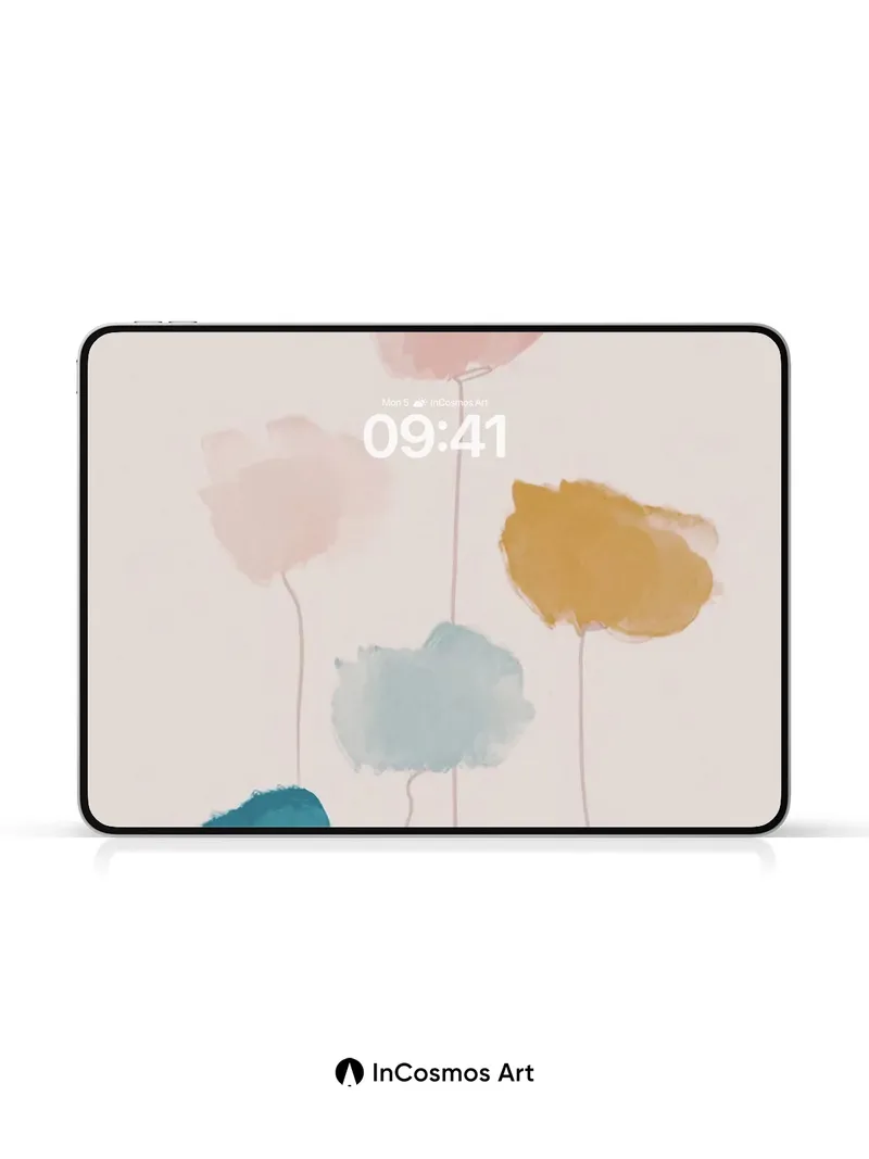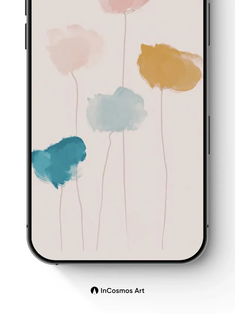 Serene Watercolor Bloom Wallpaper with Soft Stems