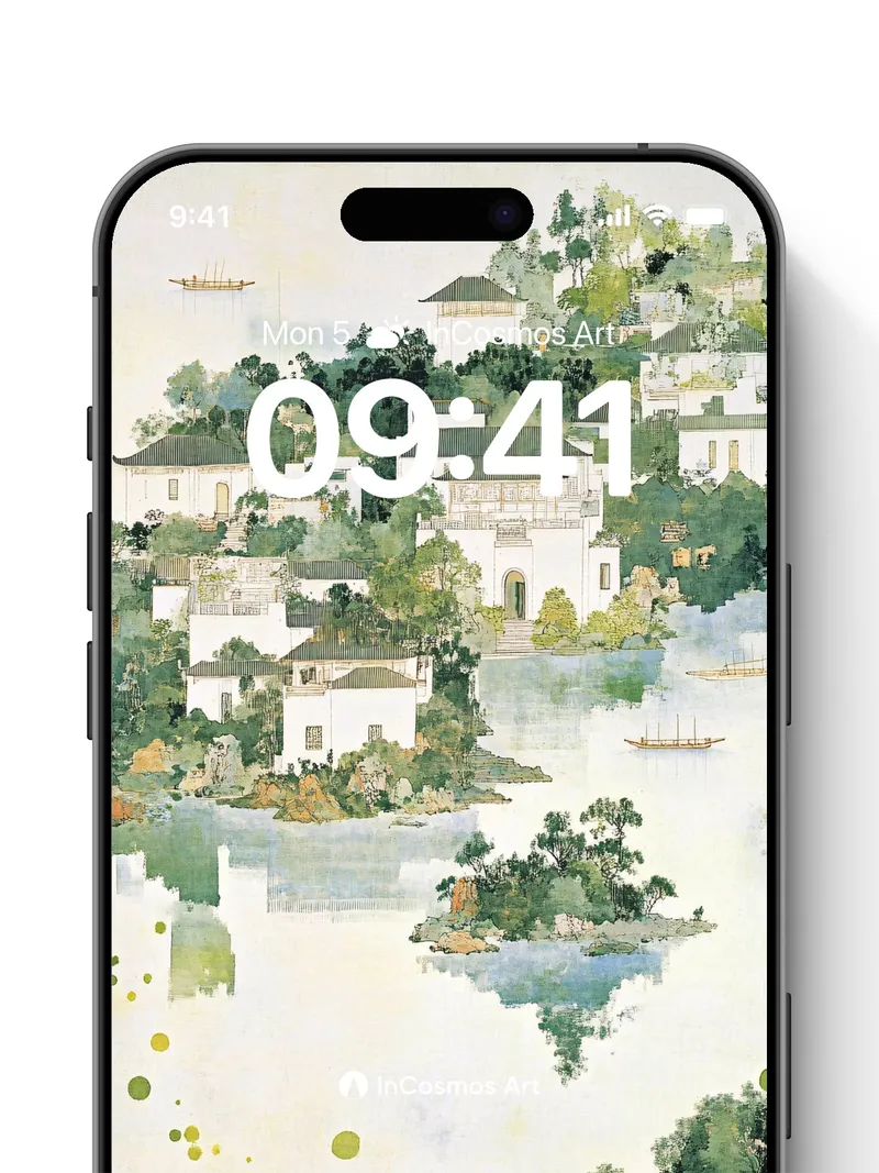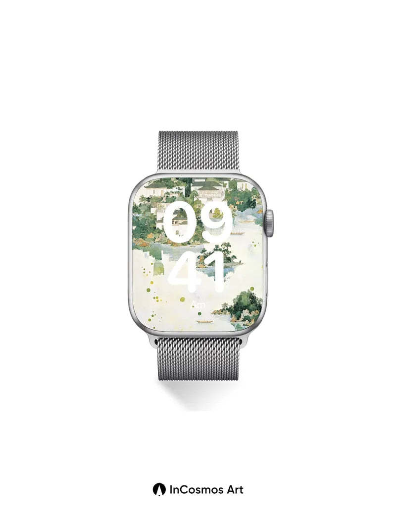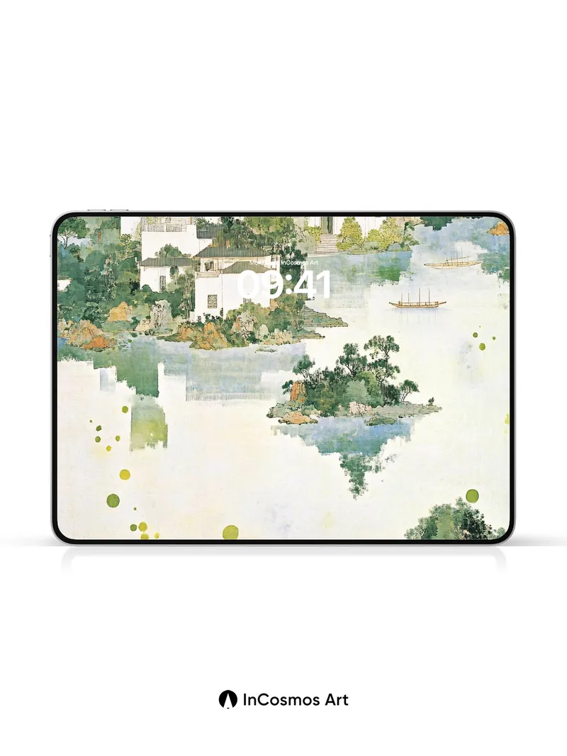 Debug product.metafields.custom.desc: Did you know traditional Chinese ink wash paintings often used water to create ethereal reflections, mimicking the soul’s quiet mirror? Here, pale jade mist drifts over whitewashed homes nestled in emerald hills, where boats glide like breath across still lakes and tiny islands float as if dreaming. The brushstrokes breathe life into every tree, each leaf a whisper of green against sky-bleached paper.