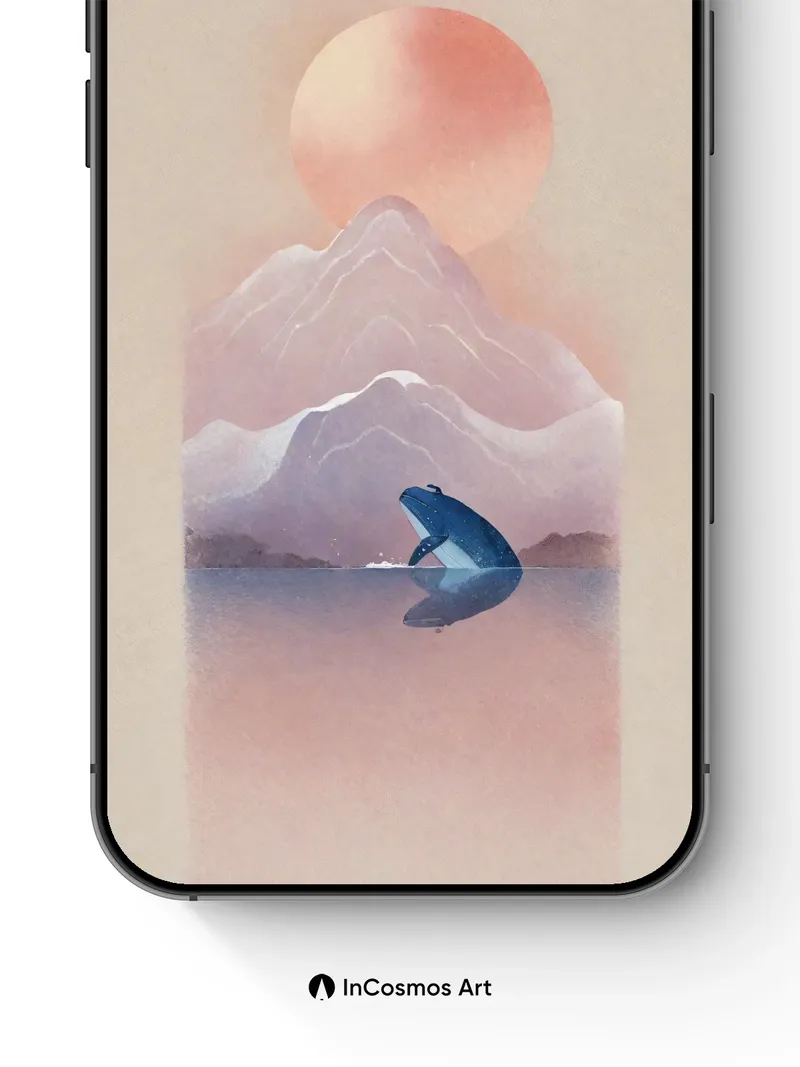 Serene Whale Wallpaper with Mountain Mirage