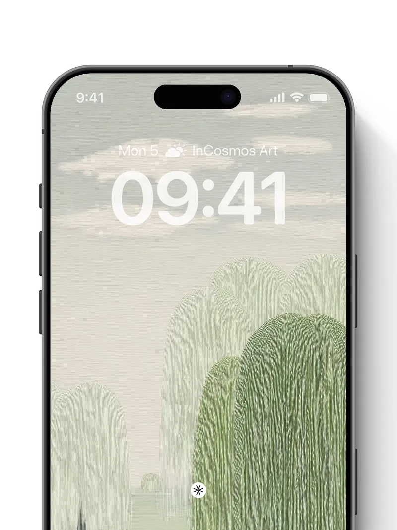 Soft, misty willow branches cascade like silk threads, enveloping a lone figure in quiet solitude. Did you know willows are often associated with flexibility and resilience, thriving even in challenging conditions? Share this with your best friend. Send this to your love and swap a matching set. Where does your mind wander in this gentle haze?