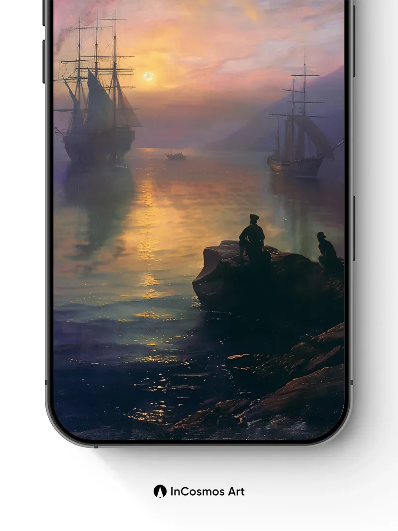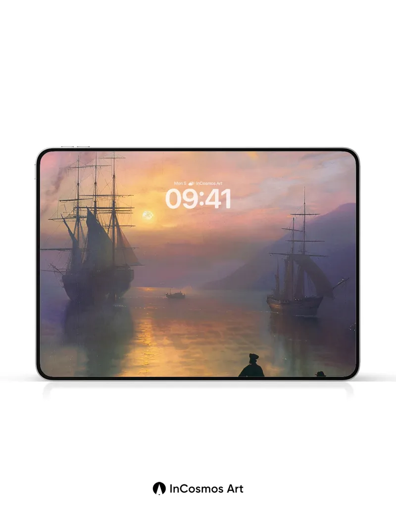 Serenity at Dusk Wallpaper with Silhouetted Ships
