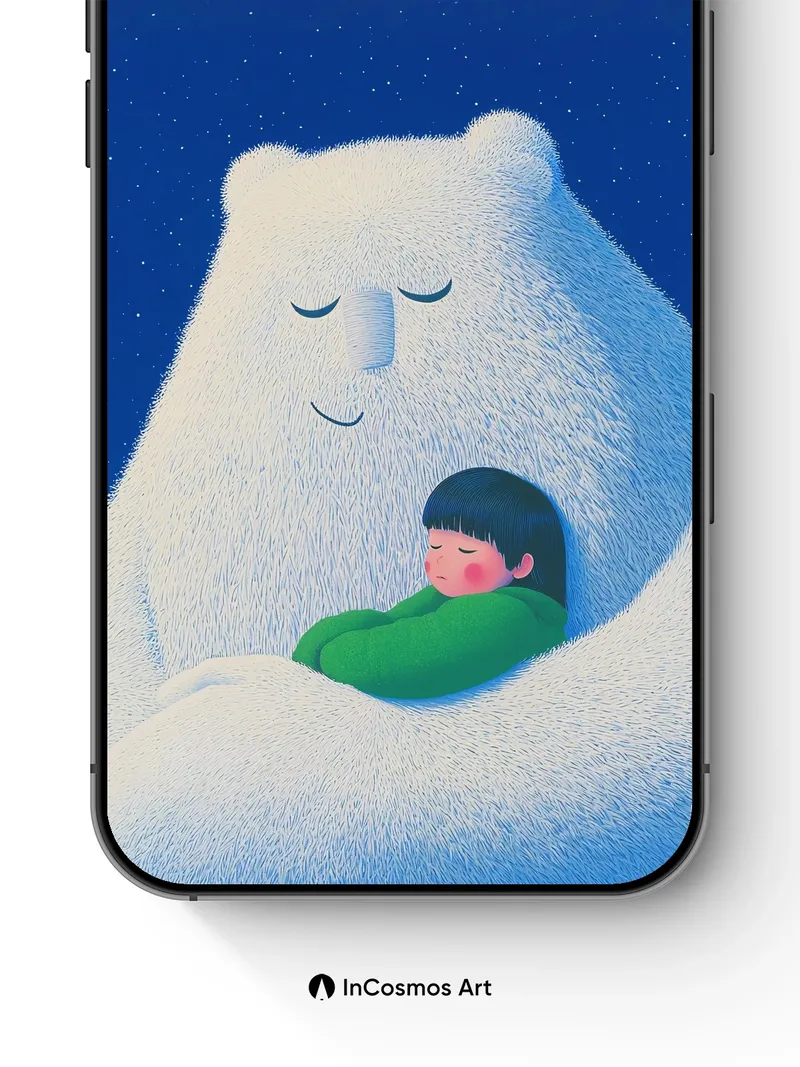 Serenity Bear Hug Wallpaper with Starlit Embrace