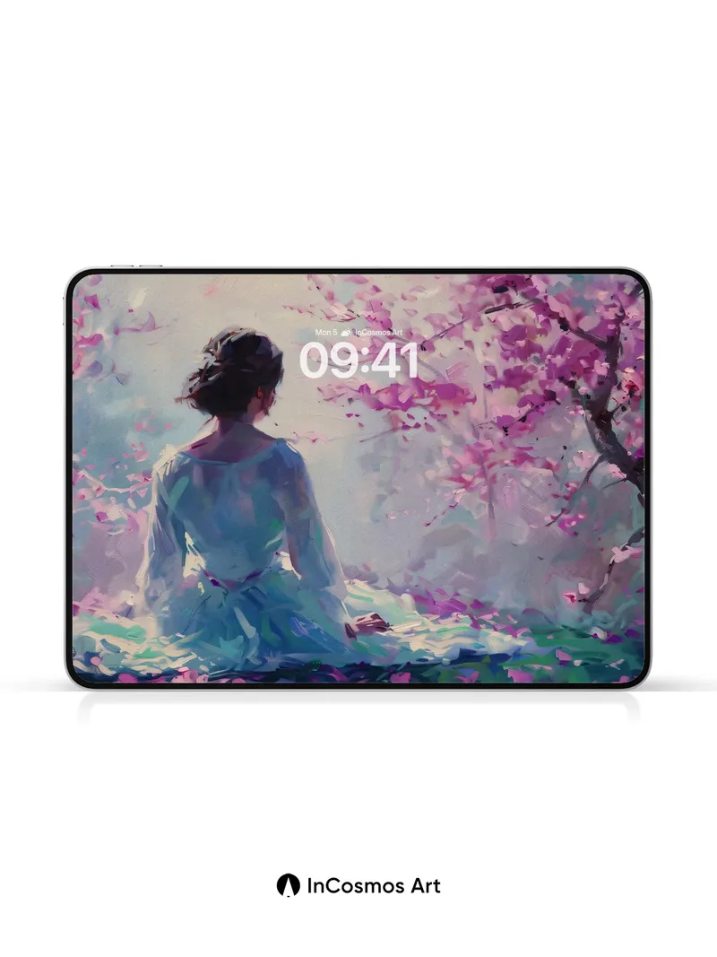 Serenity Bloom Wallpaper with Cherry Petal Drift
