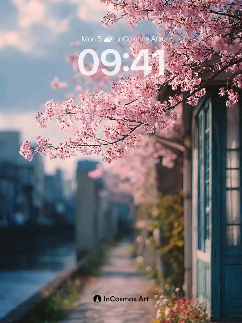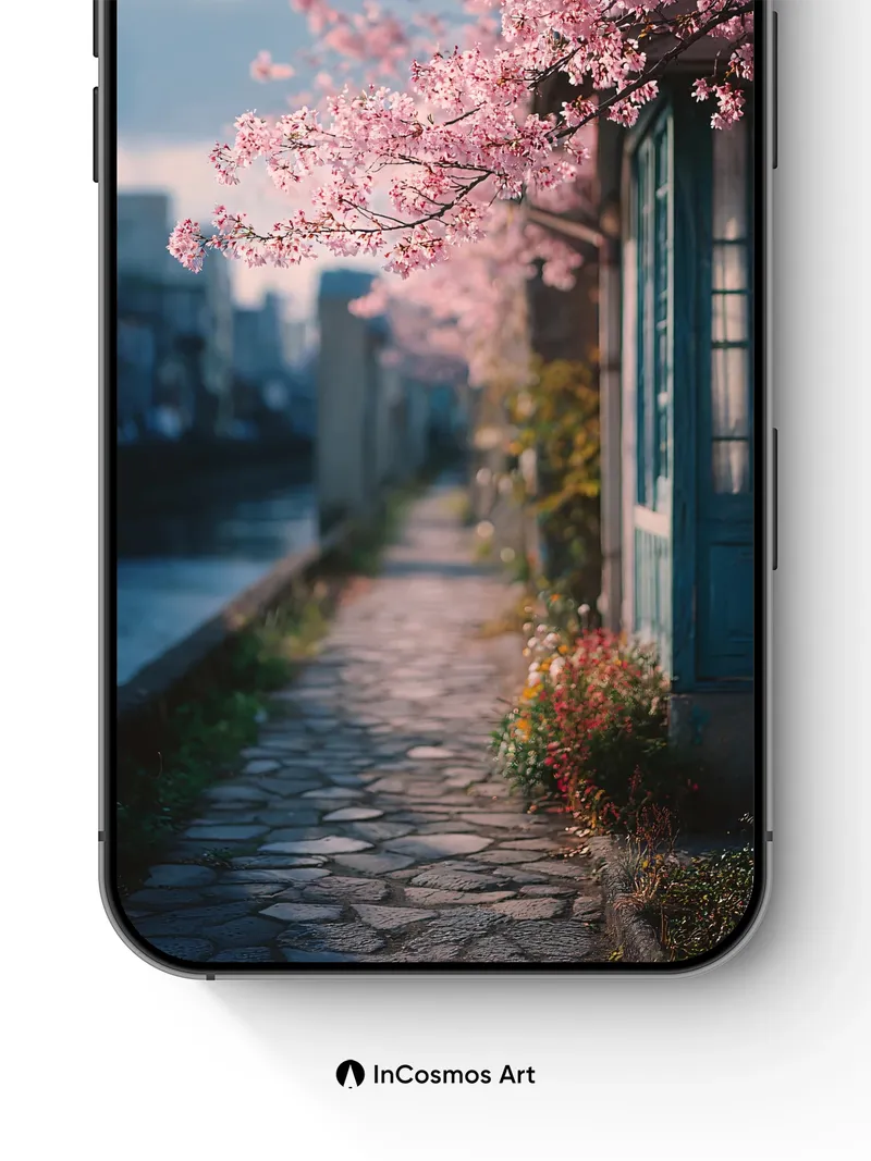 Serenity Blossom Wallpaper with Stone Pathway