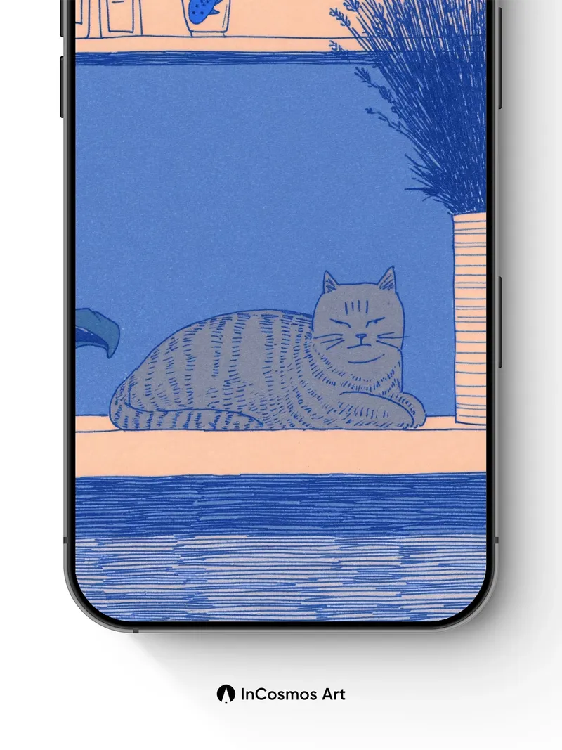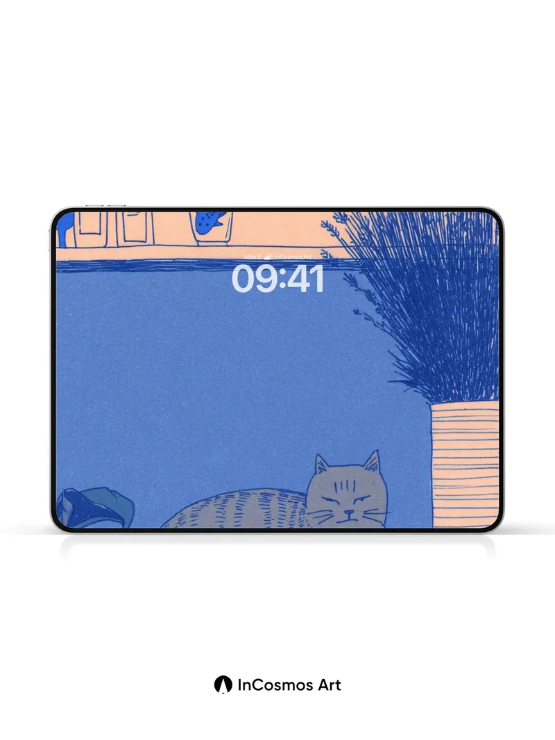Serenity Blue Cat Wallpaper with Lavender Stillness