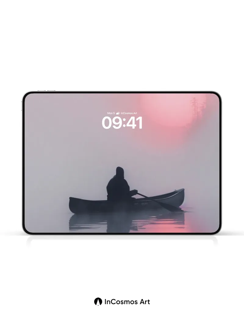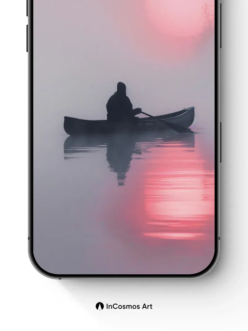Serenity Canoe Wallpaper with Pink Horizon Glow
