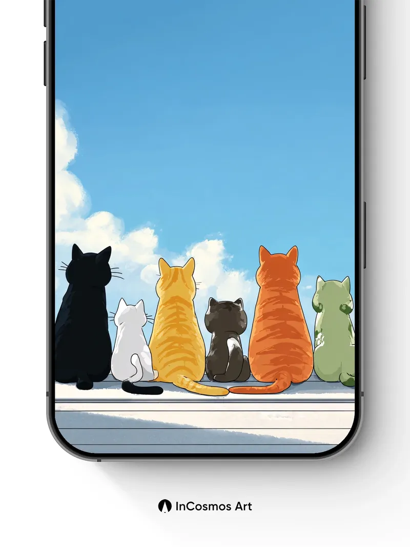 Serenity Cat Lineup Wallpaper with Skyward Gaze