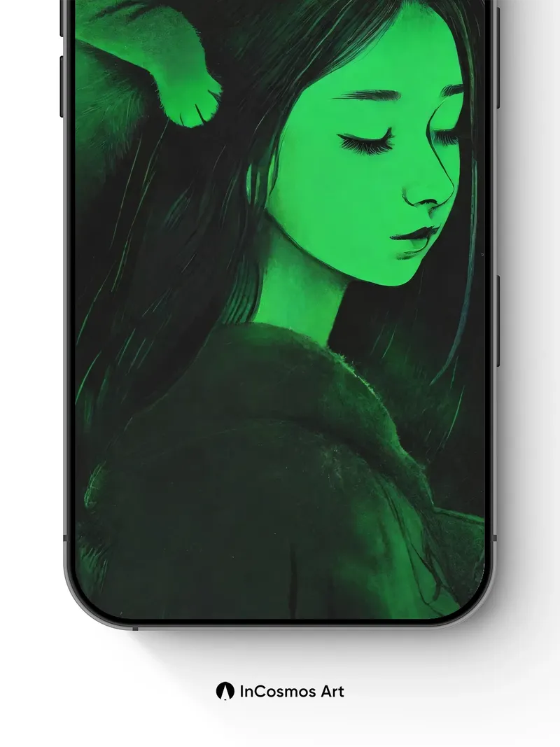Serenity Cat Wallpaper with Emerald Light