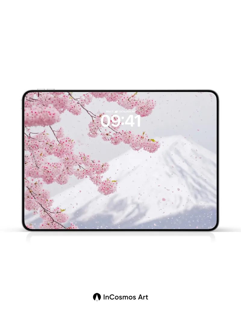 Serenity Cherry Bloom Wallpaper with Mount Fuji