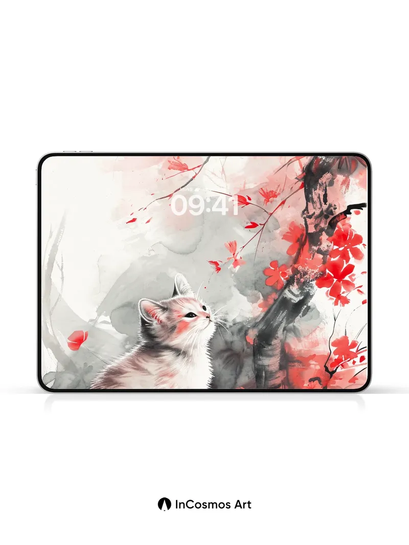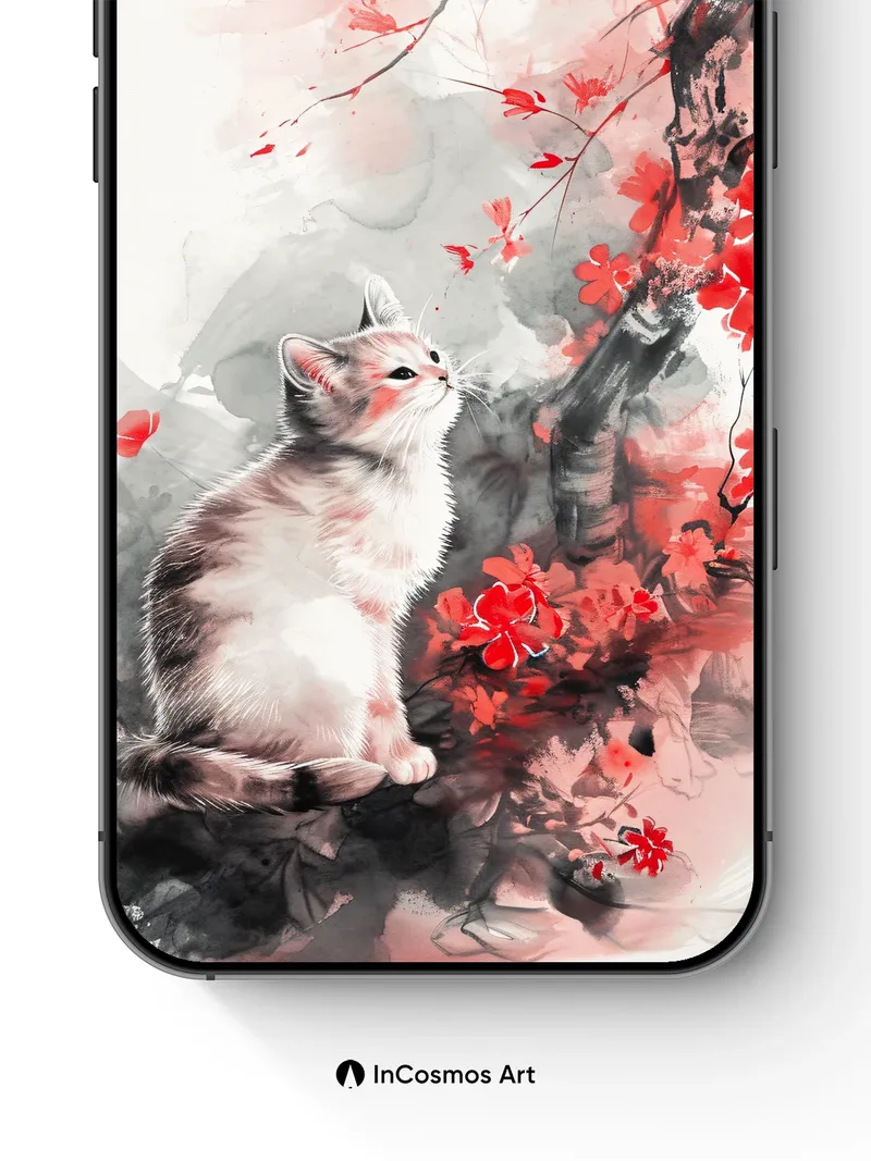 Serenity Cherry Bloom Wallpaper with Whiskered Gaze