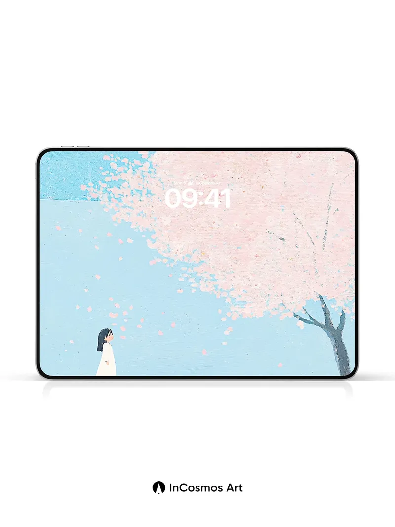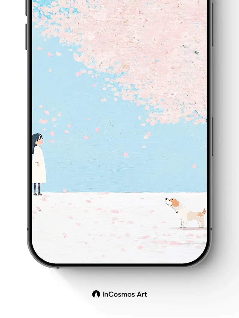 Serenity Cherry Bloom Wallpaper with Whispering Canine