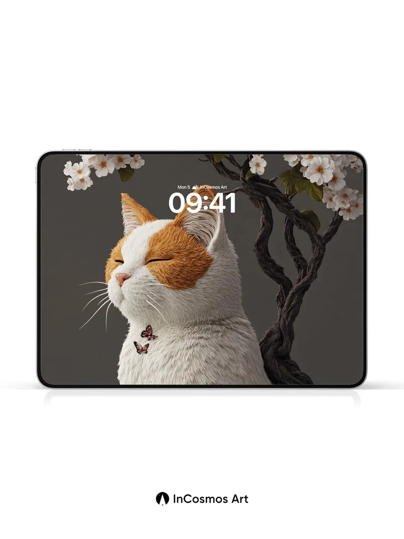 Serenity Cherry Blossom Wallpaper with Sleeping Cat