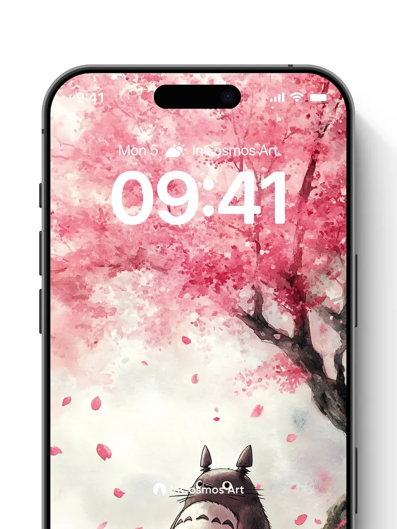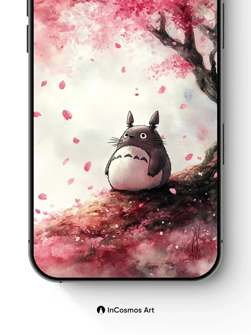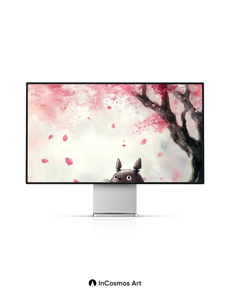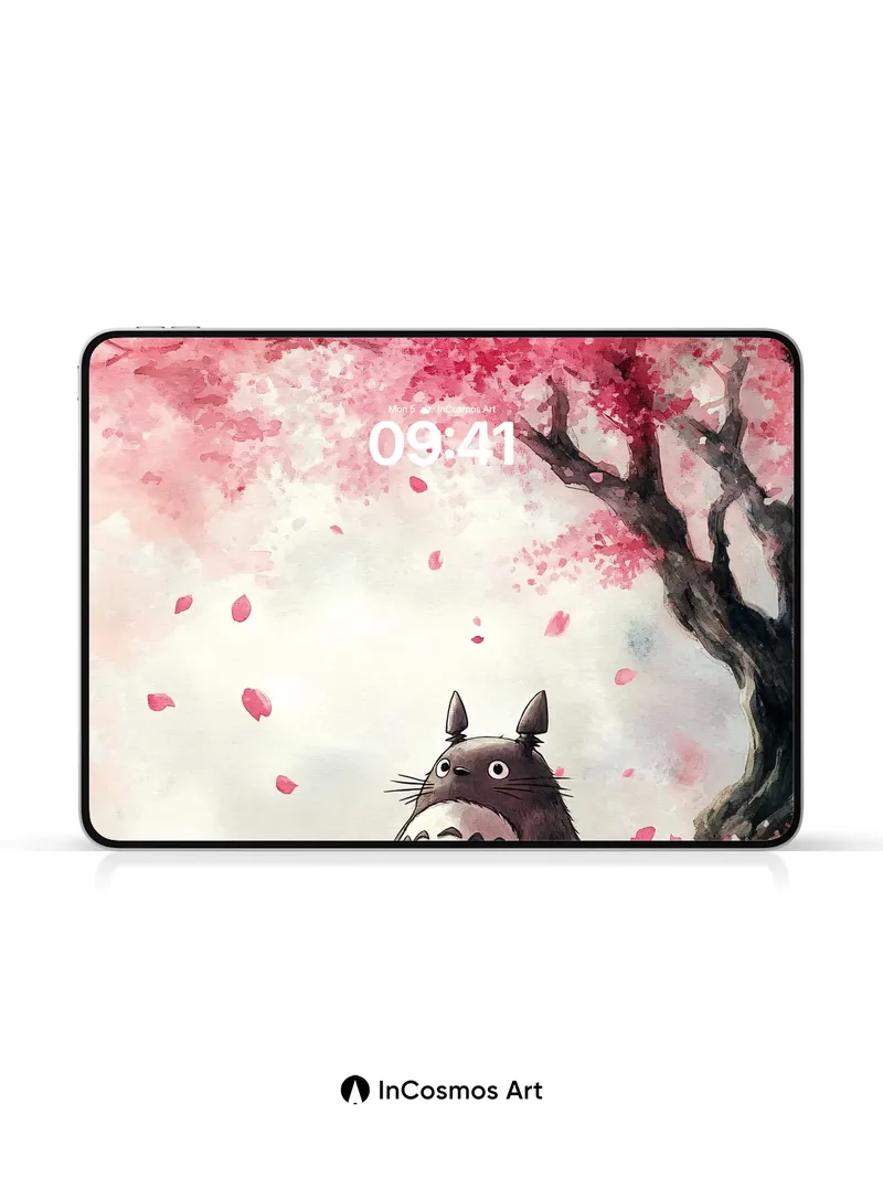 Serenity Cherry Blossom Wallpaper with Totoro's Quiet Watch