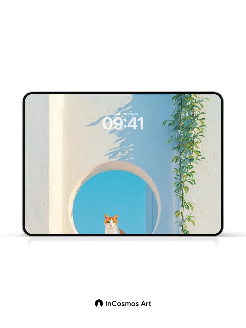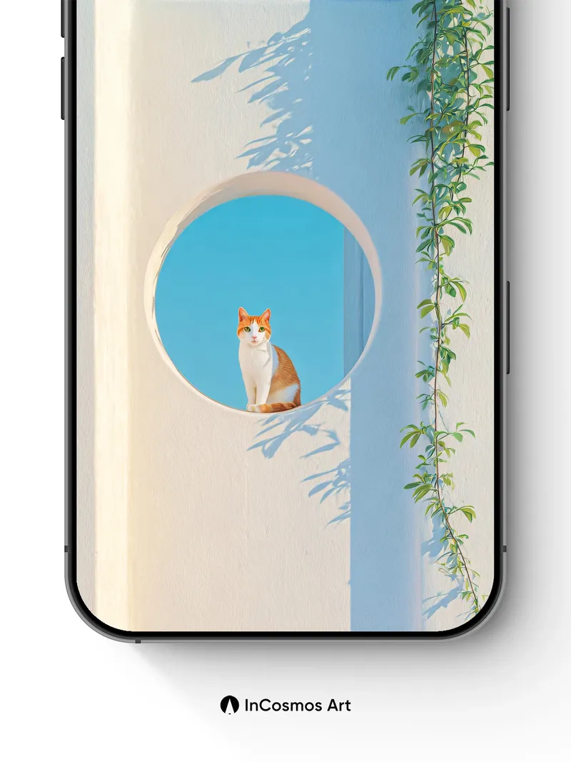 Serenity Circle Wallpaper with Sunlit Cat