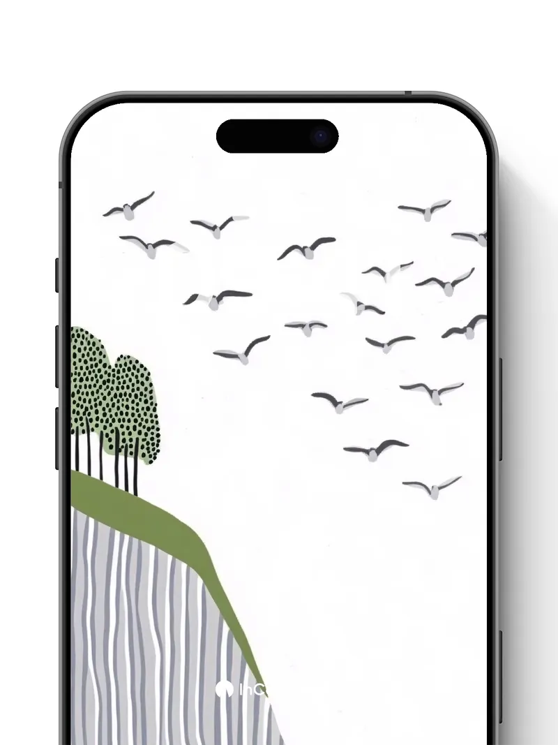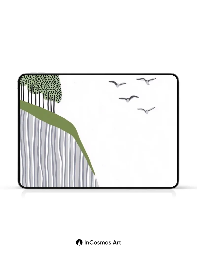 Serenity Cliff Wallpaper with Flying Flock