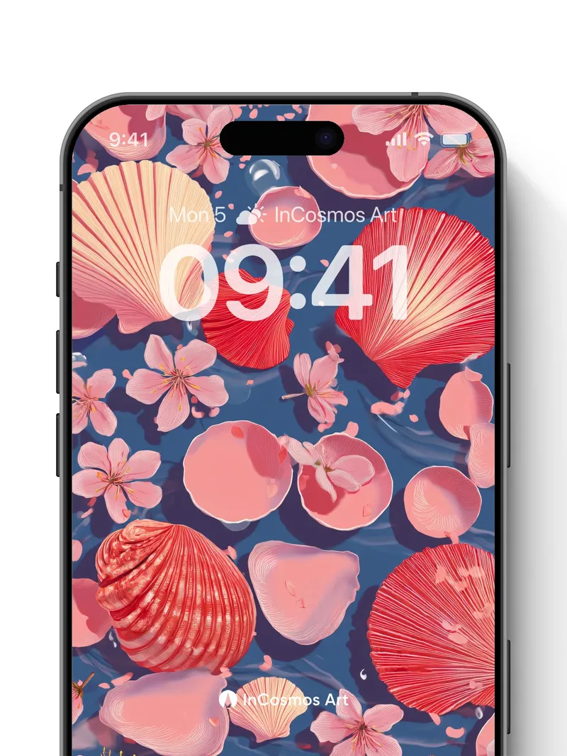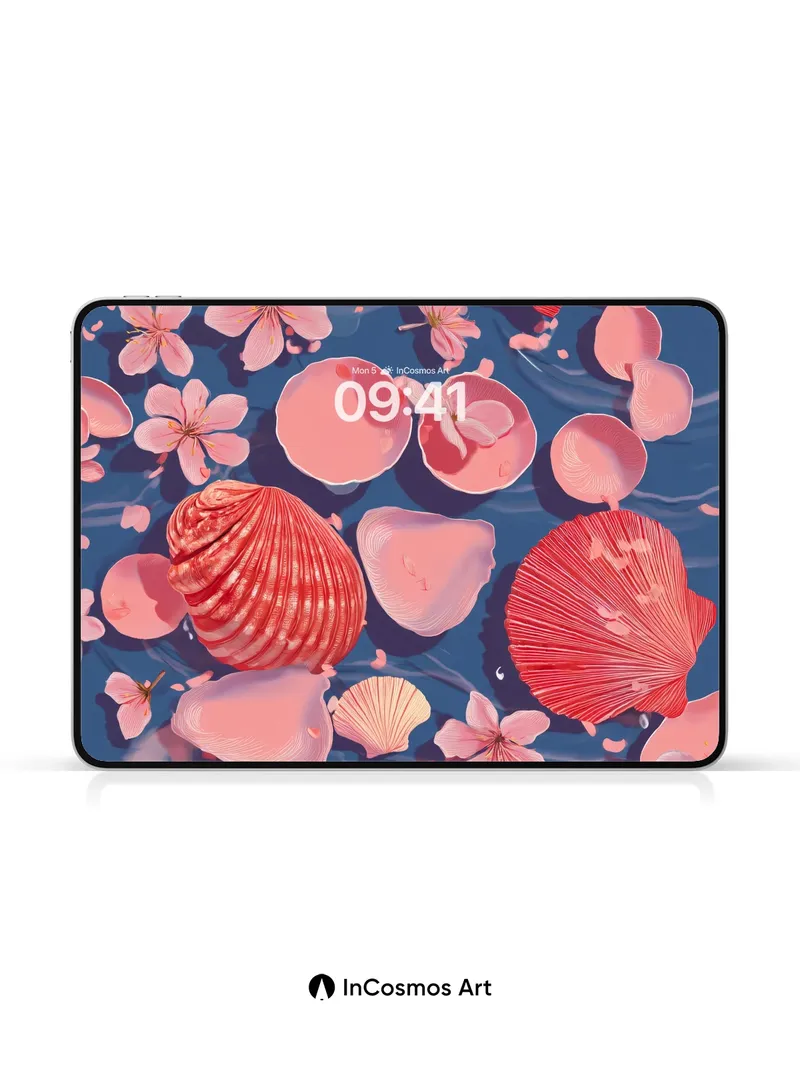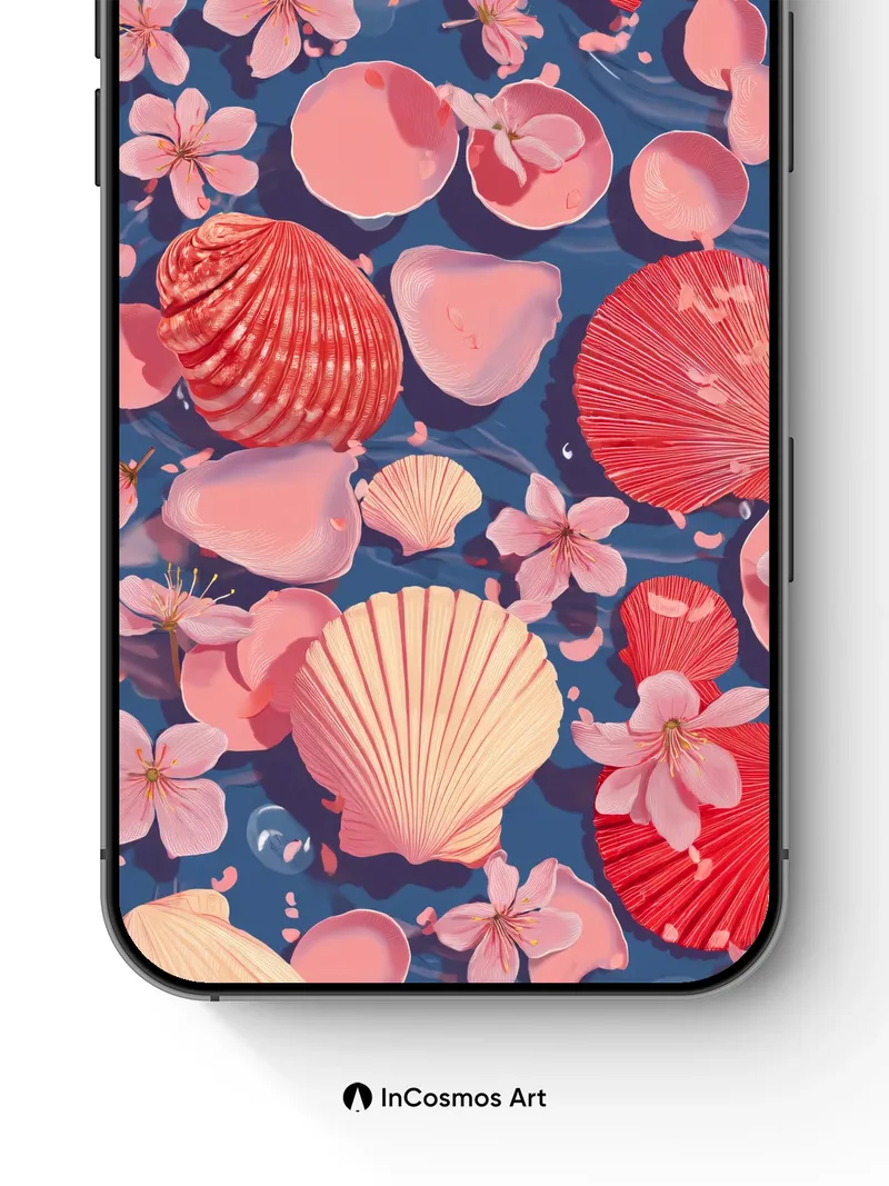 Serenity Drift Wallpaper with Cherry Petals and Shells
