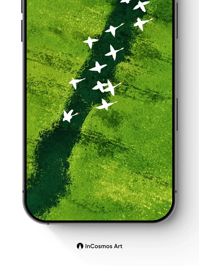 - iPhone: Save image → Photos → Set as Wallpaper (Depth/Parallax options available)