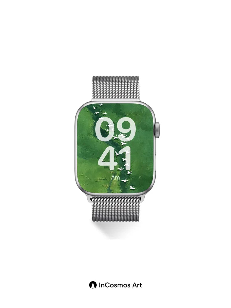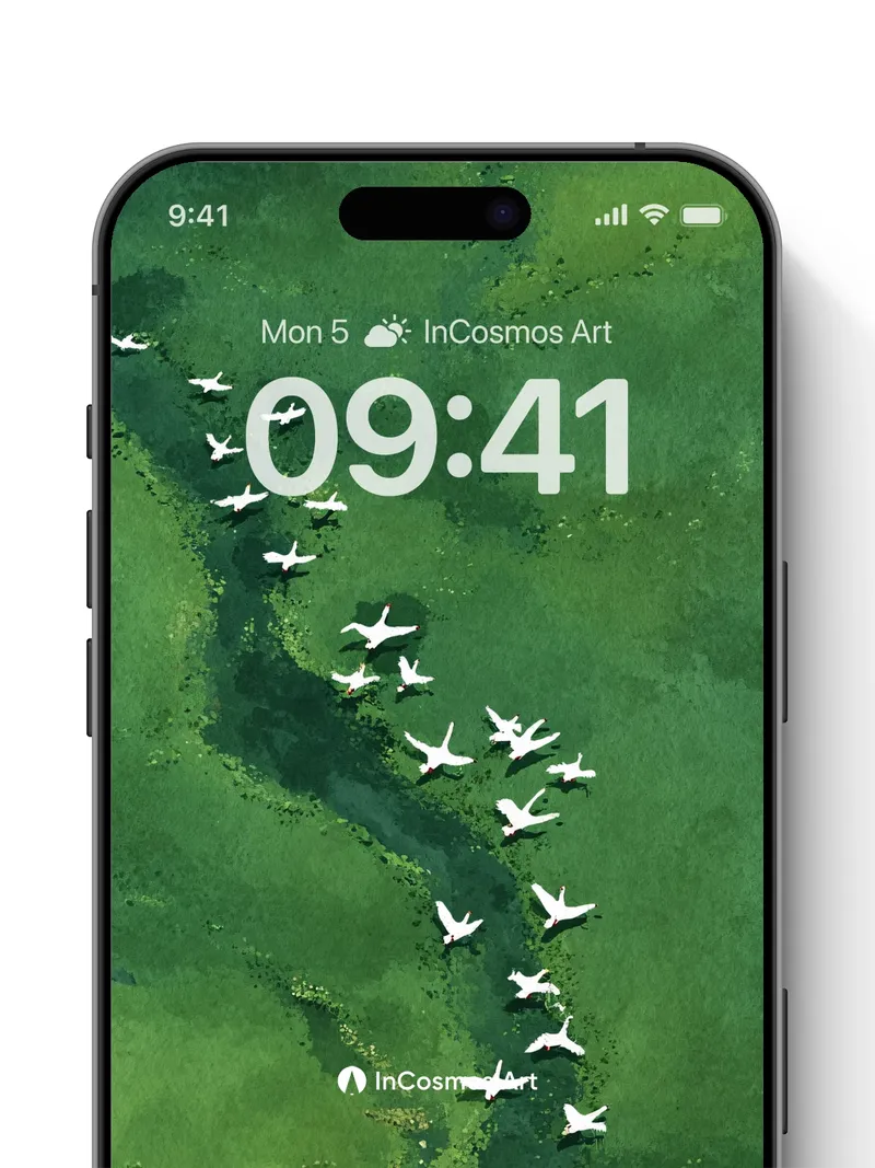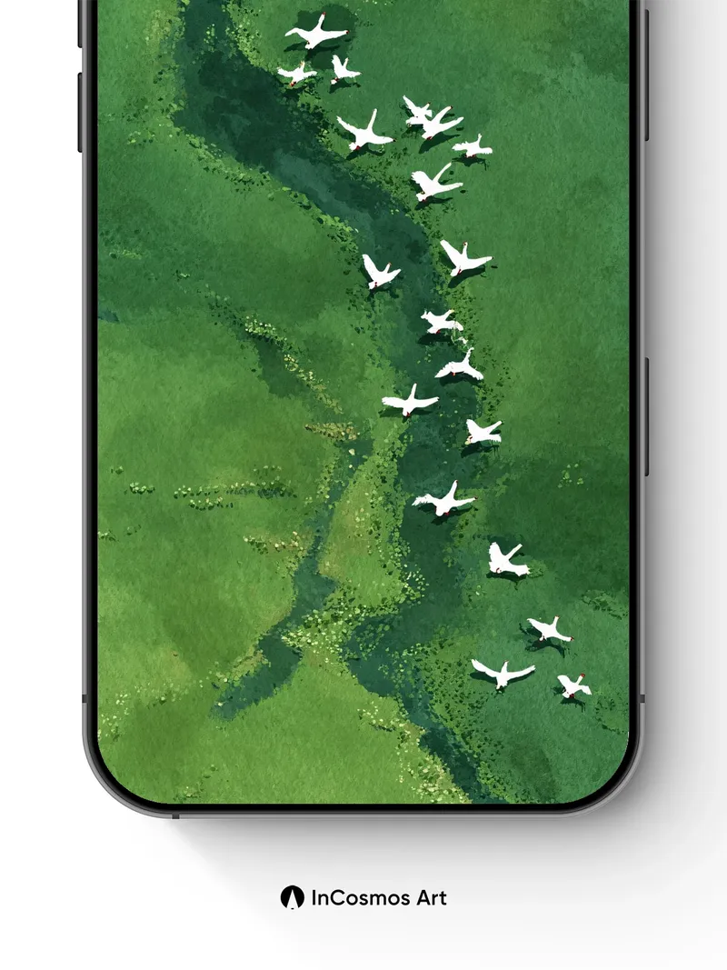 Debug product.metafields.custom.desc: Did you know that cranes migrate in V-formations to conserve energy, their wings slicing through air like silent oars? You see them now—white silhouettes tracing a winding river of jade and shadow, where light breathes through the algae-streaked water below. Each bird is a punctuation mark in nature’s long sentence, flying not just over land but across time itself.
