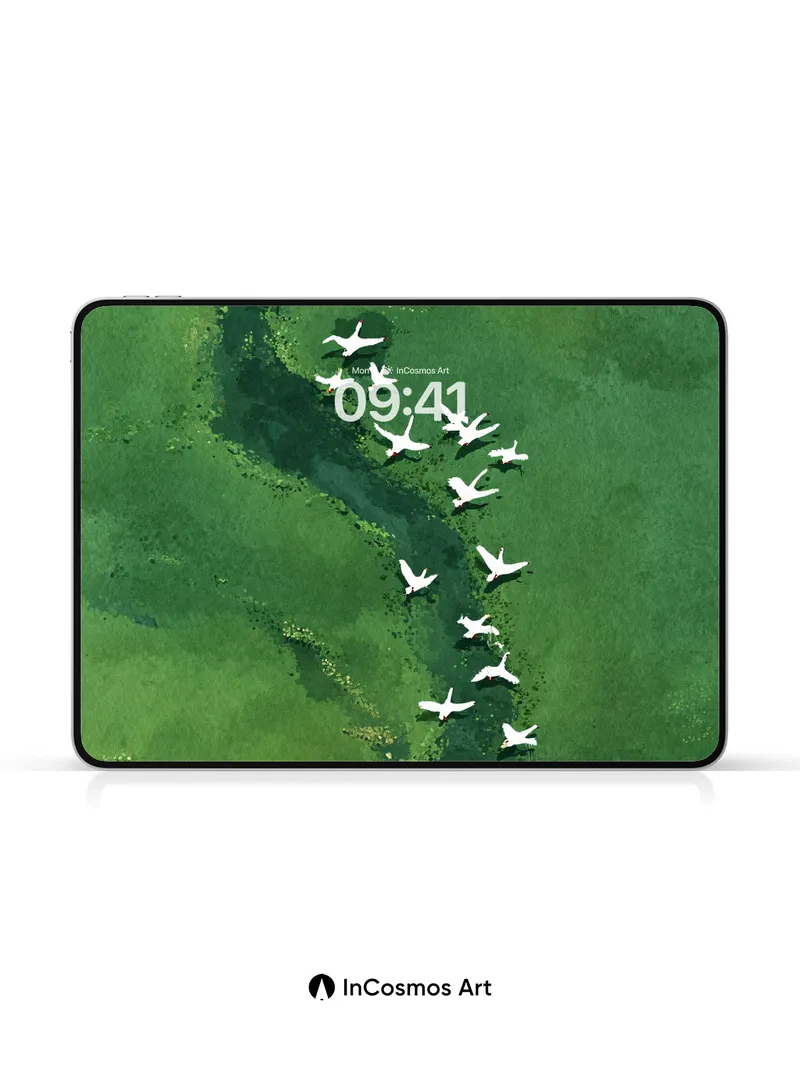 Debug page_description: Did you know that cranes migrate in V-formations to conserve energy, their wings slicing through air like silent oars? You see them now—white silhouettes tracing a winding river of jade and shadow, where light breathes through the algae-streaked water below. Each bird is a punctuation mark in nature’s long sentence, flying not just over land but across time itself. Share this with your best friend. Send this to your love and swap a matching set. What if every flight left a trail of forgotten stories behind?