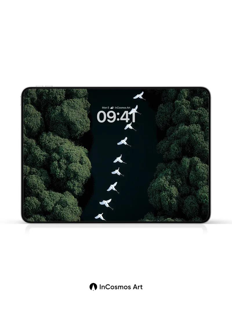 Serenity Flight Wallpaper with Forest Canopy Veil