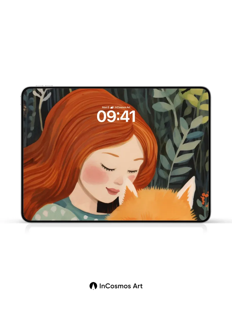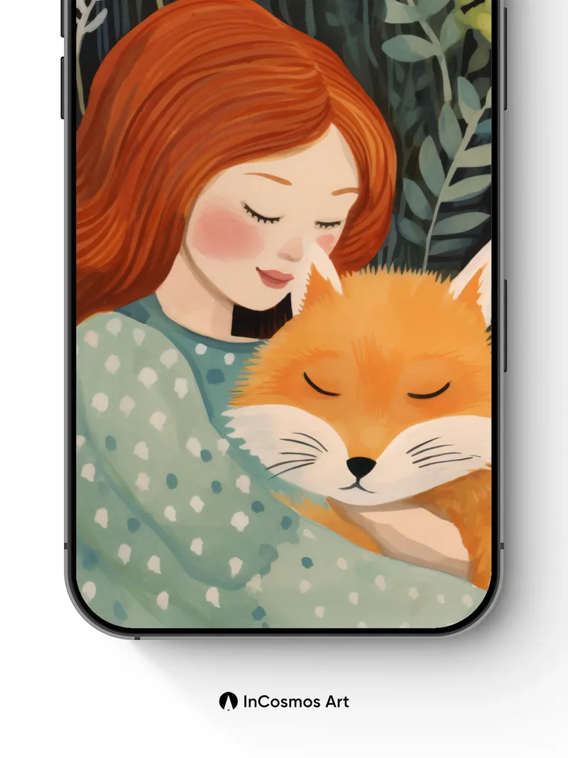Serenity Fox Hug Wallpaper with Forest Whispers
