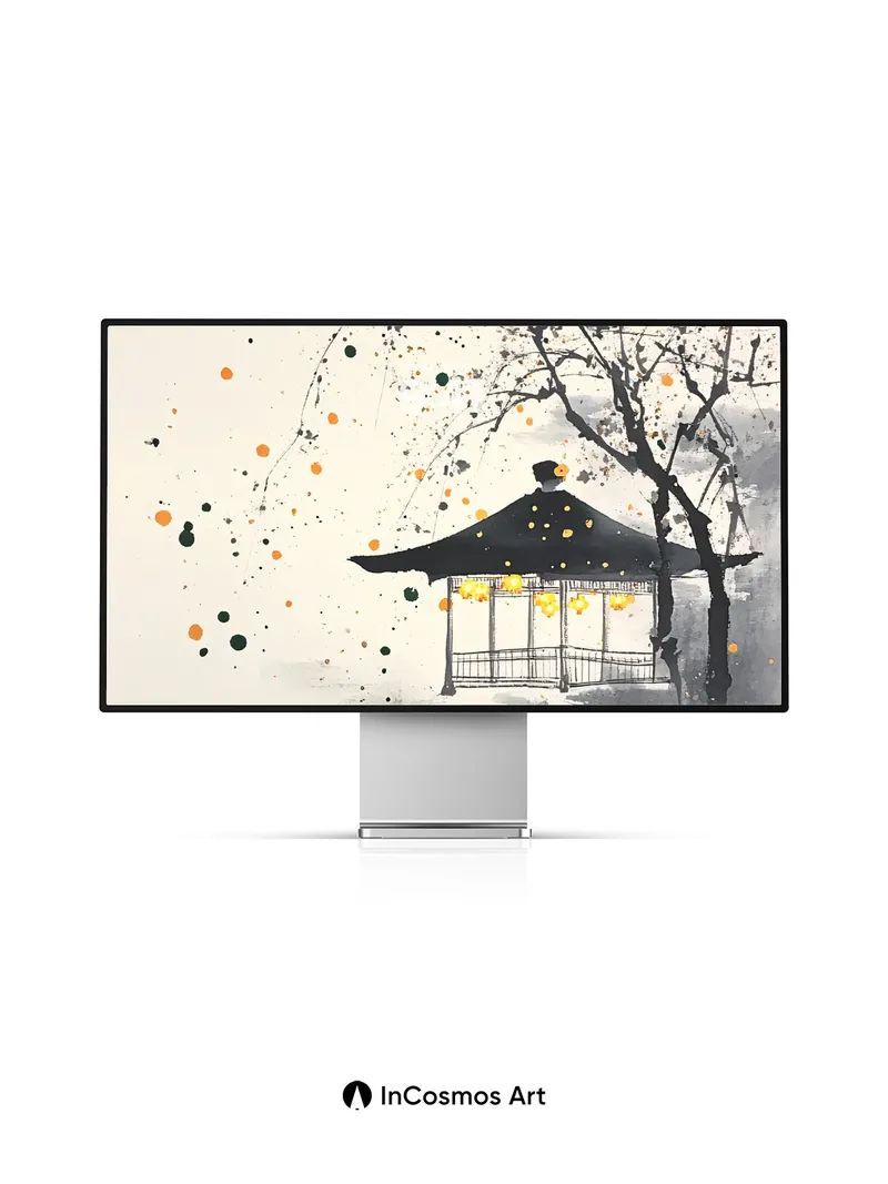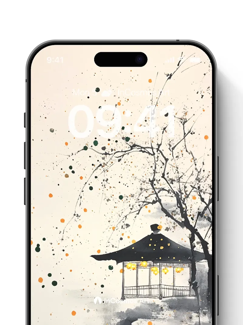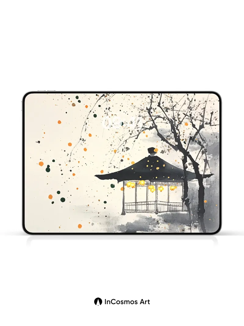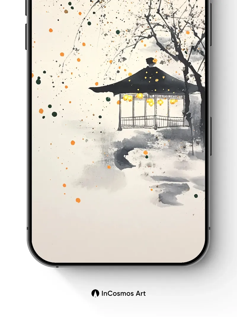 Serenity Gazebo Wallpaper with Floating Ink Dots