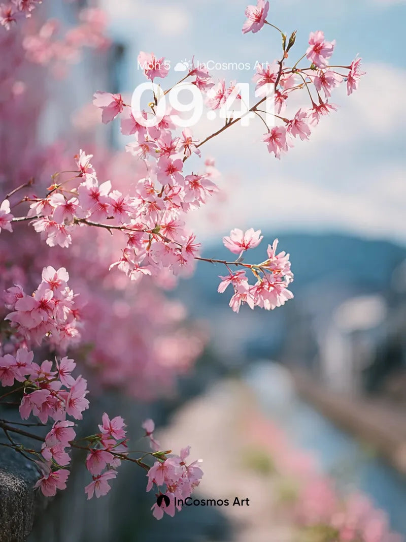 Serenity in Bloom Wallpaper with Cherry Petal Drift