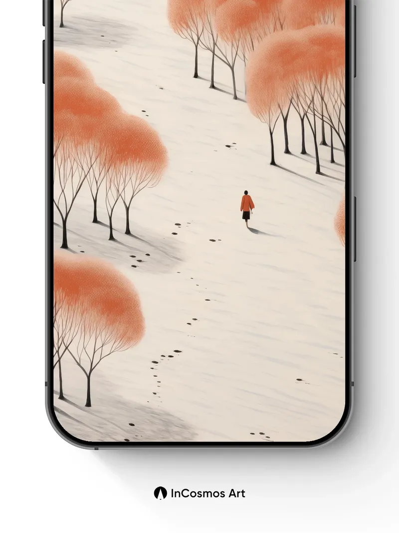 Serenity in Coral Canopy Wallpaper with Snow-Blanketed Path