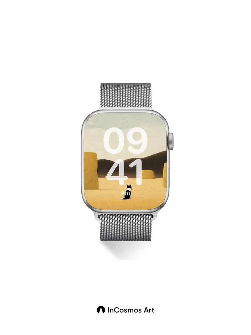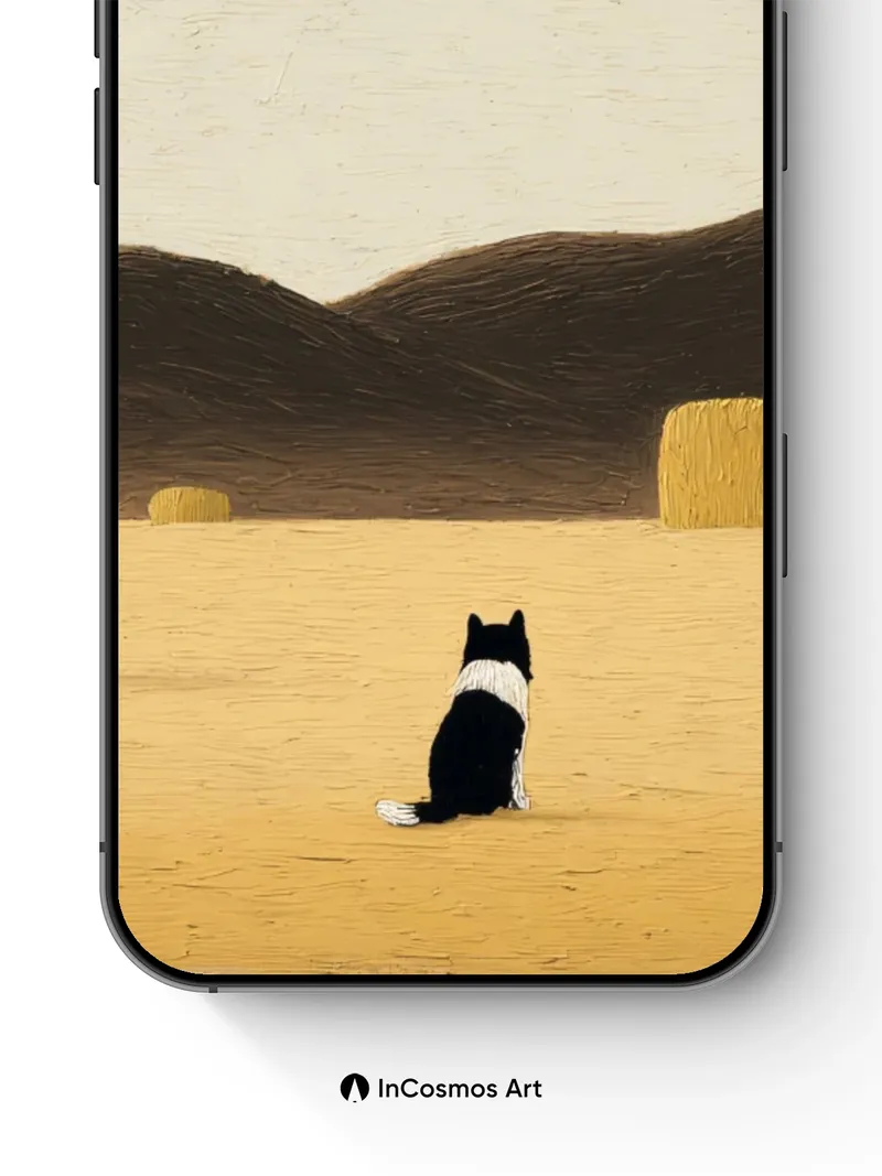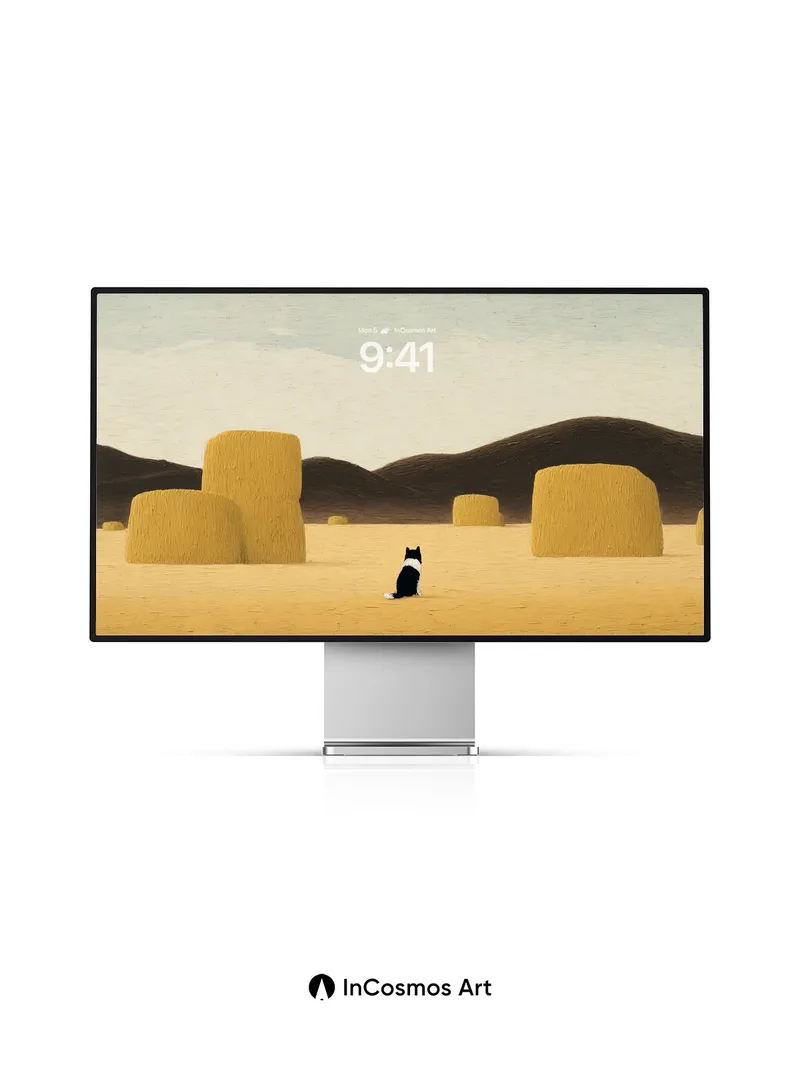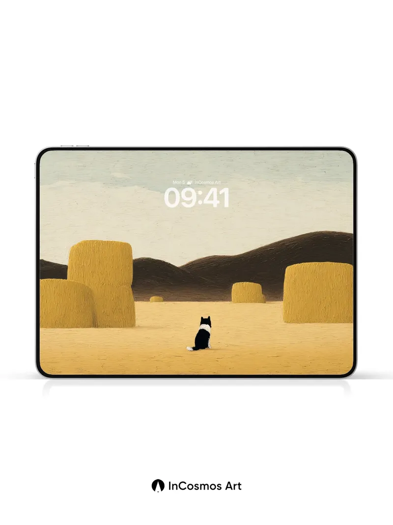 Serenity in Haystacks Wallpaper with Solitary Cat