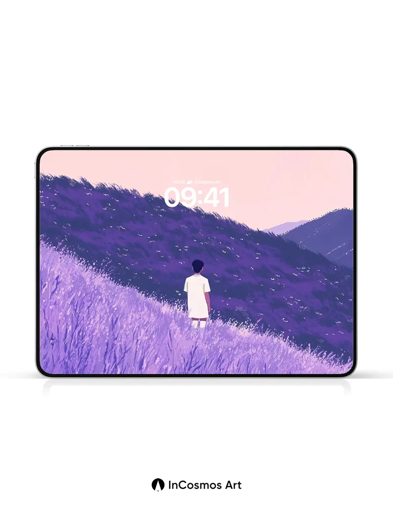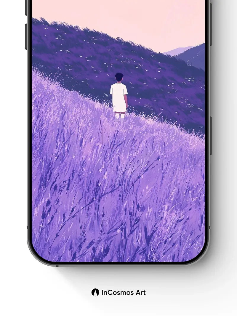 Serenity in Lavender Fields Wallpaper with Solitary Figure