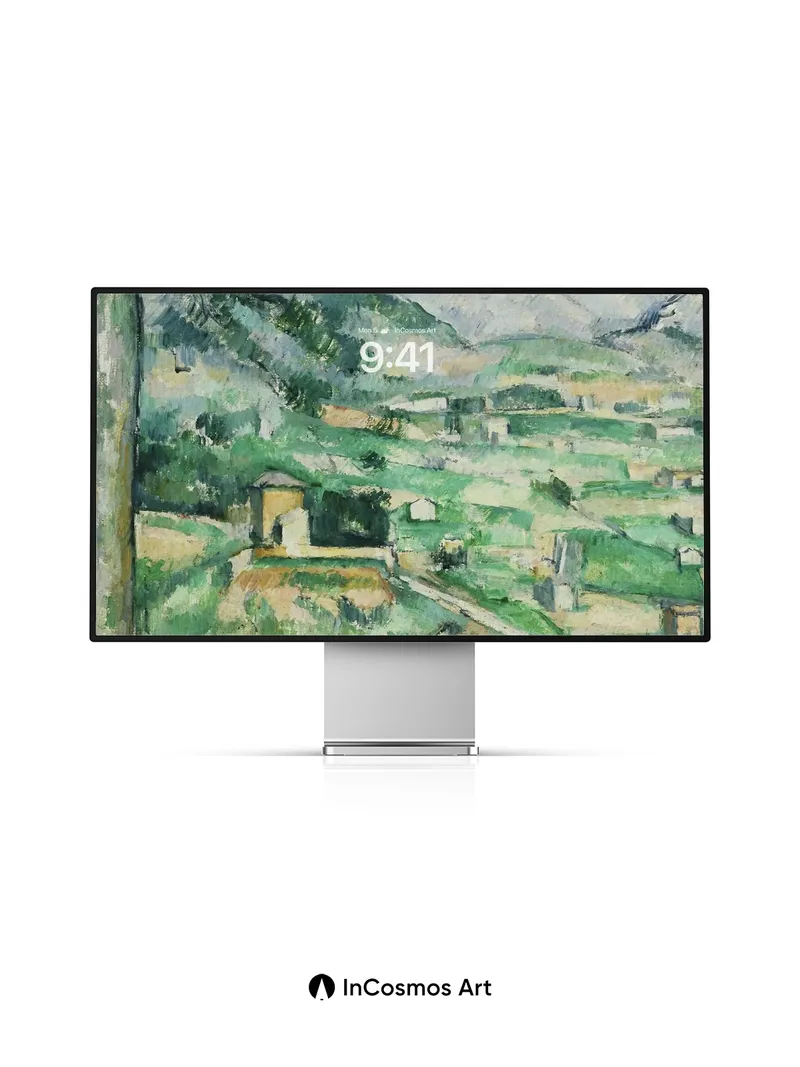 Debug product.metafields.custom.desc: Did you know Cézanne once said, 'I want to make of Impressionism something solid and lasting like the art of the museums?' Here, light breathes through thick impasto strokes, where olive groves climb terraced hills under a sky brushed with soft ash-gray clouds. The distant mountain looms not as a peak but as a dream held in place by green fields and scattered stone huts — a landscape that feels both ancient and eternal.